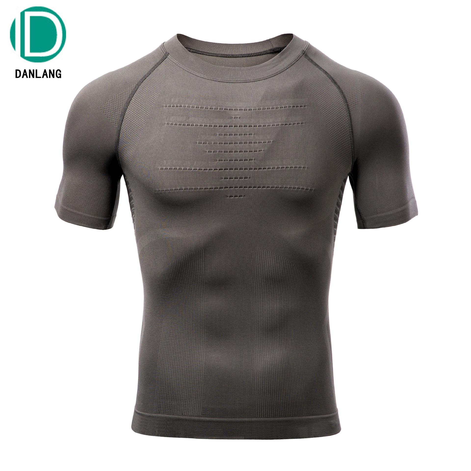 남성용 심리스 압축복 피트니스웨어, 고탄성 런닝 에너지 셔츠, 마라톤 스포츠 흡습 속건 타이츠 반팔