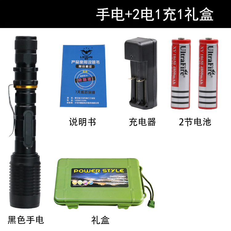 • 블랙 손전등 + 2 전기 1 충전 1 선물 상자