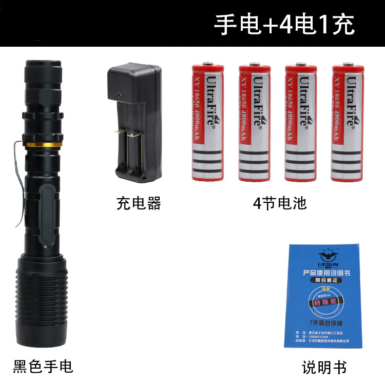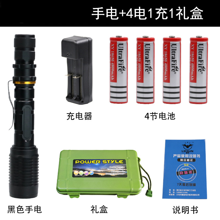 • 블랙 손전등 + 4 전기 1 충전 1 선물 상자