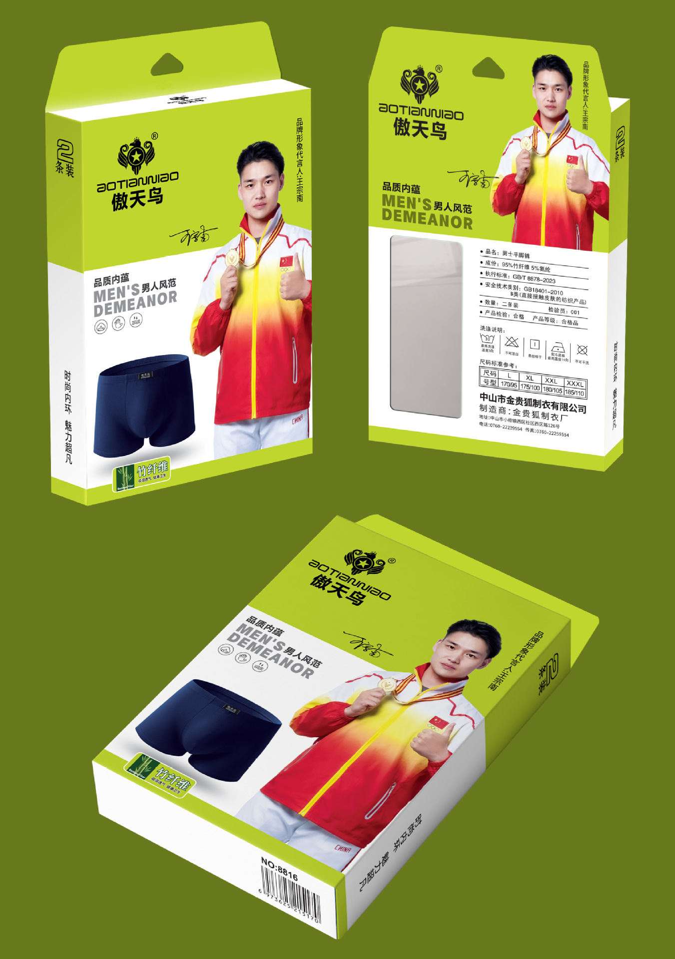 Ao Tian 새 슈퍼마켓 2 박스형 대나무 섬유 남성 상자 통기성 모달 팬티 남성 상자 도매