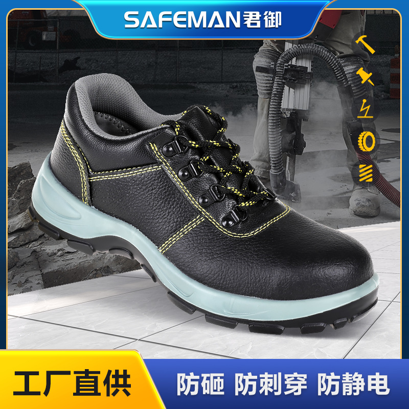Junyu E6013 안전화 충돌 방지 펑크 방지 정전기 방지 미끄럼 방지 내유성 로우탑 소가죽 노동 신발 송장