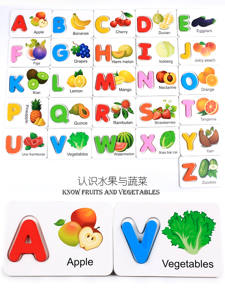 딩뉴토이즈 나무 과일 영어 알파벳 카드 나무 알파벳 과일 카드 매칭 블록 퍼즐 부모-자녀 상호작용스토어 가기