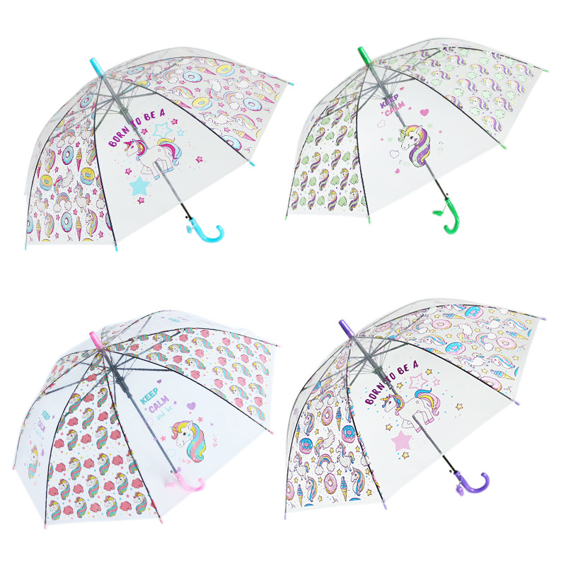 공장 도매 투명 어린이 우산 만화 우산 창조적 인 성인 우산 만화 직선 막대 우산