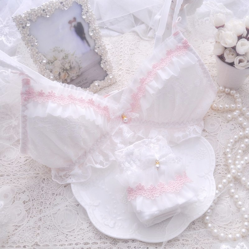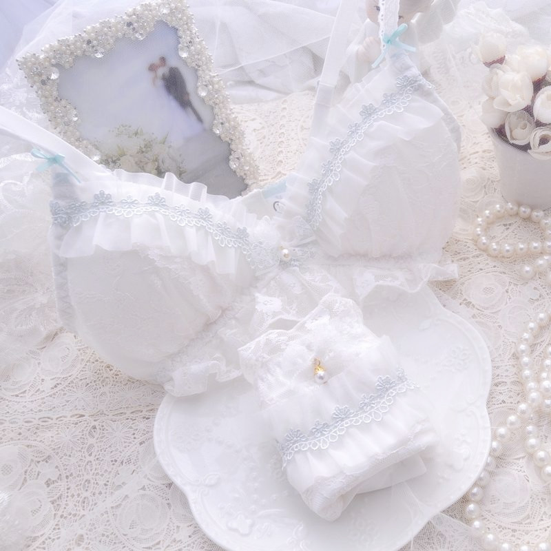 일본 스타일 화이트 아니 스틸 링 얇은 삼각형 컵 속옷 편안한 수면 브래지어 캐주얼 소녀의 브래지어 세트 여름