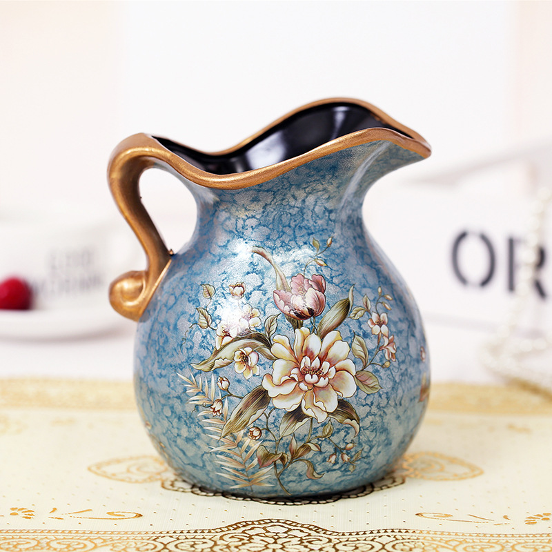 유럽식 가벼운 럭셔리 크리에이티브 공예 세라믹 페인트 작은 꽃병 꽃 정리 작은 우유 냄비 홈 거실 코너 테이블 장식 장식품