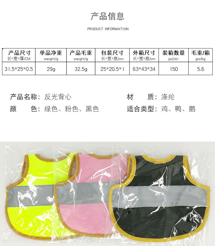 아마존 새로운 애완 동물 의류 의류 애완 동물 오리 조끼 반사 망토 가을과 겨울 방수 치킨 조끼