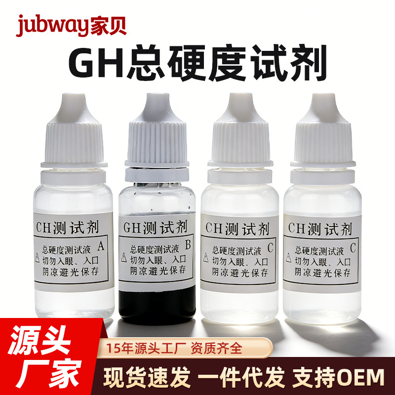 购买前必看:一套里面有4瓶试剂,分别是1瓶GH测试剂A,1瓶GH测试剂B,2瓶GH测试剂C。GH总硬度是用来检测水中钙镁的总含量。