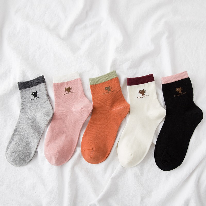 봄과 여름 새로운 숙녀 튜브 양말 고양이 면화 학술 스타일 숙녀 양말 여성 양말 제조 업체 도매스토어 가기