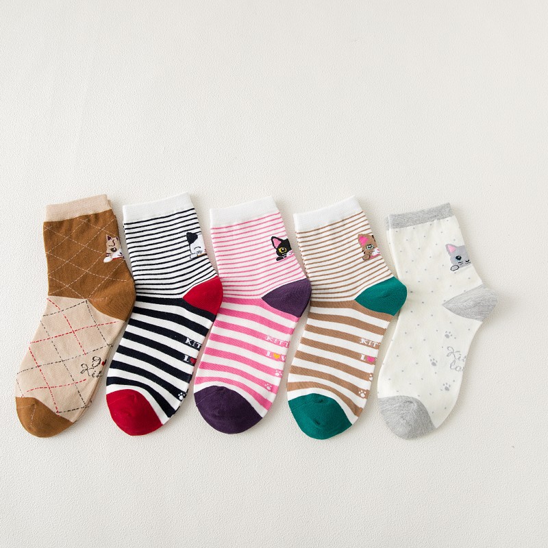 봄과 여름 새로운 숙녀 튜브 양말 고양이 면화 학술 스타일 숙녀 양말 여성 양말 제조 업체 도매