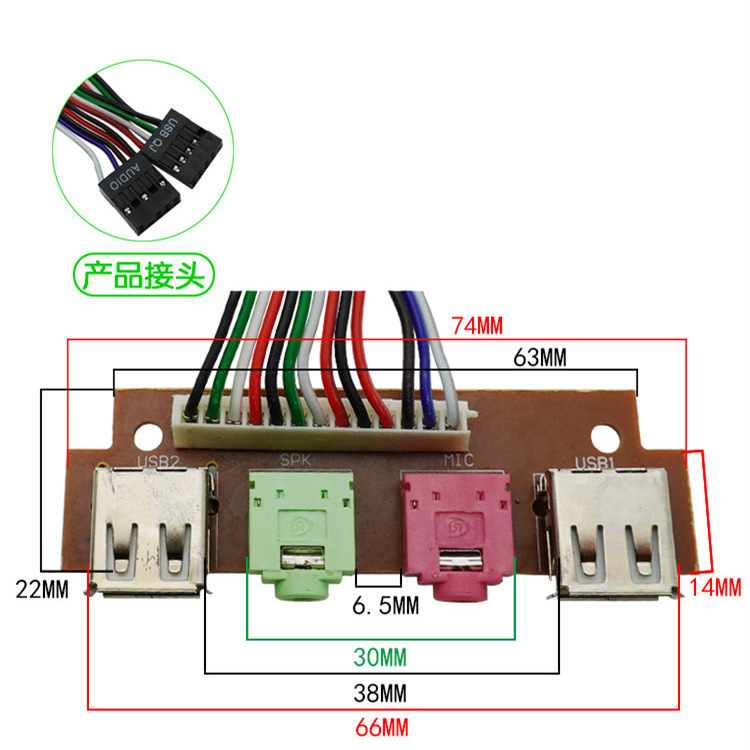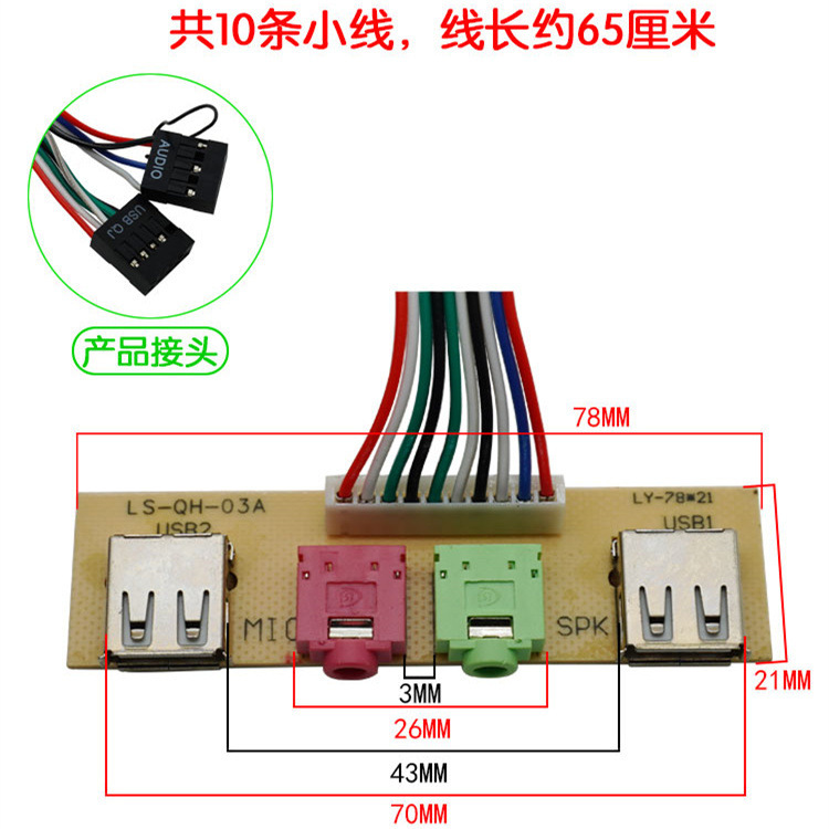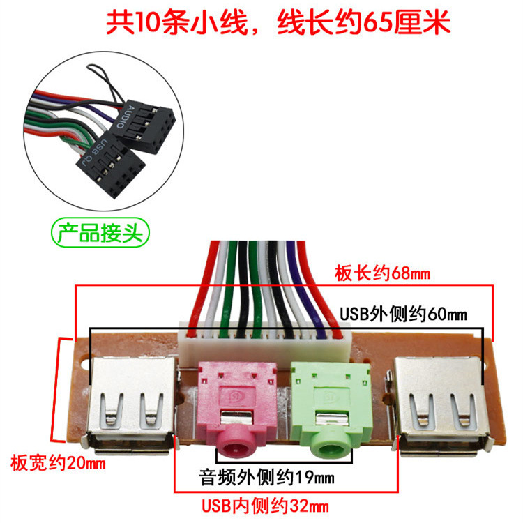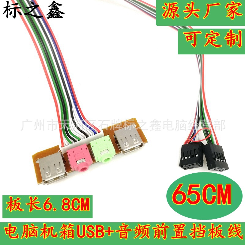 6.8cm 섀시 전면 패널 라인 오디오 포트 USB 인터페이스 데스크탑 컴퓨터 전면 베플 라인 확장 USB 포트