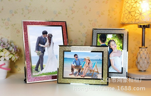 고급스러운 반짝이는 은색 A4 인증서 프레임 크리스탈 유리 사진 프레임 6inch 웨딩 사진관 7inch 가정 장식 테이블 장식스토어 가기