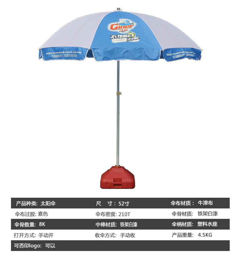 제조업체 공급 옥외 광고 비치 우산 긴 손잡이 52 인치 앞 유리 태양 우산 실속 광고 태양 우산
