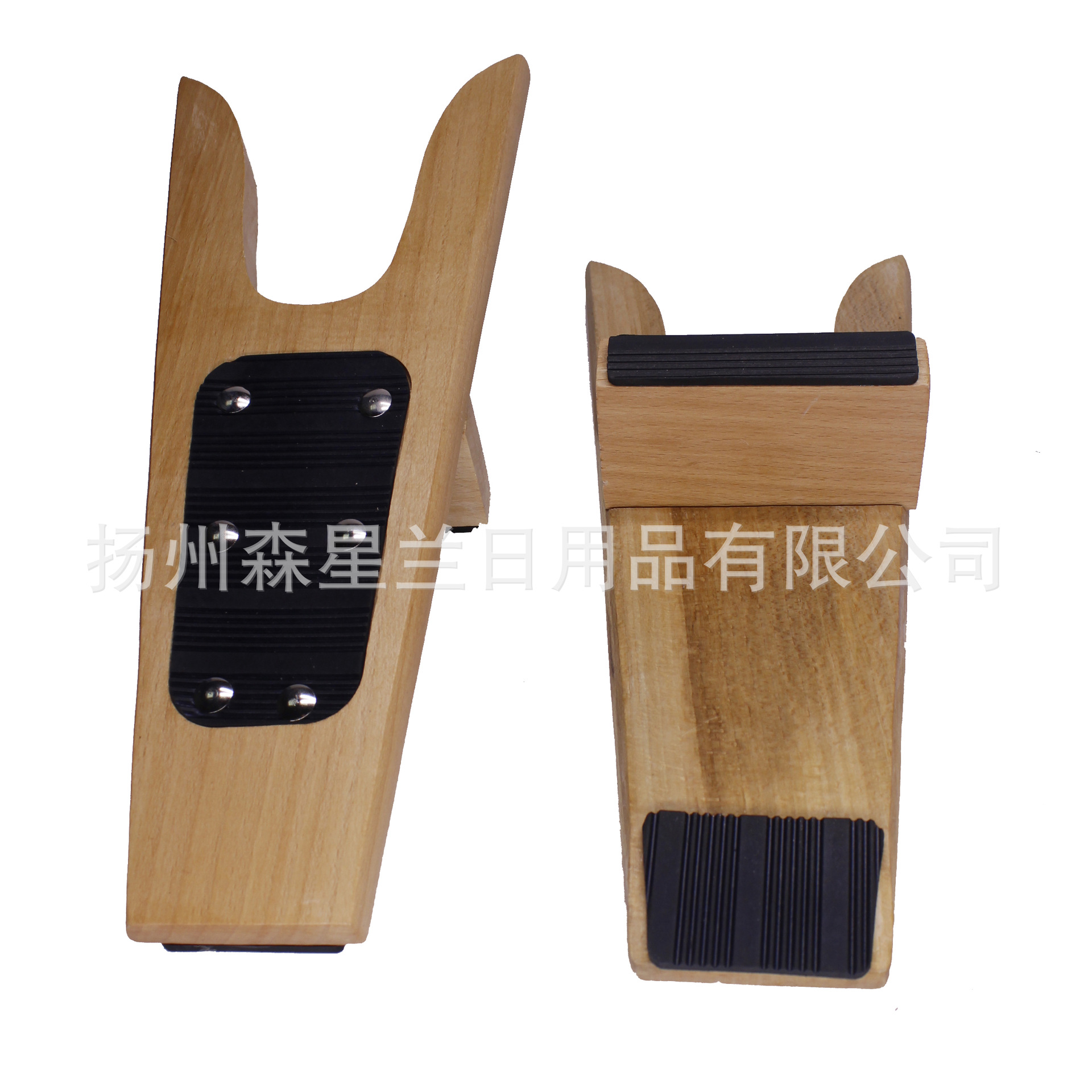 1. 一只脚先踩住托靴器本体(皮革的部位)