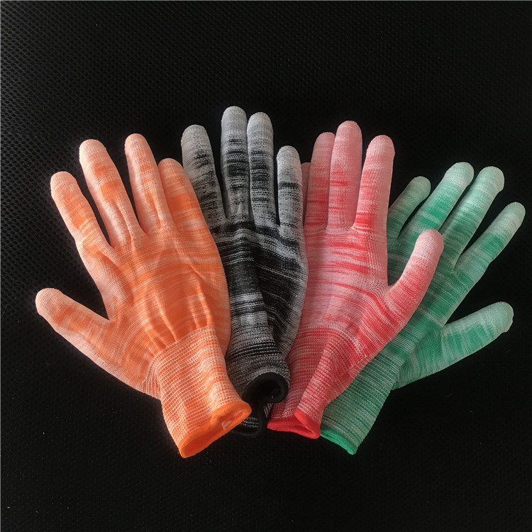 꽃 PU 손바닥 장갑 나일론 13 바늘 접착제 장갑 다양한 색상 PU 손바닥 정전기 장갑 보호 장갑