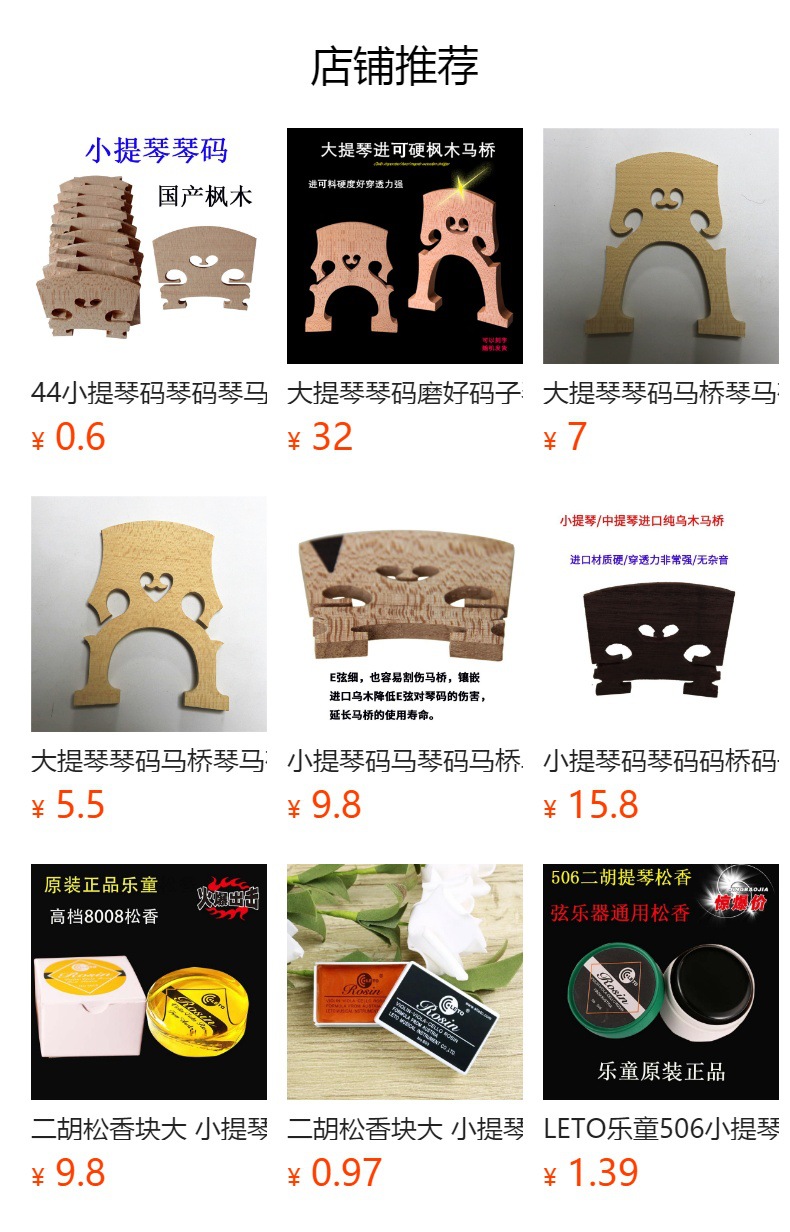 高档小提琴/中提琴/大提琴专用琴码、马桥