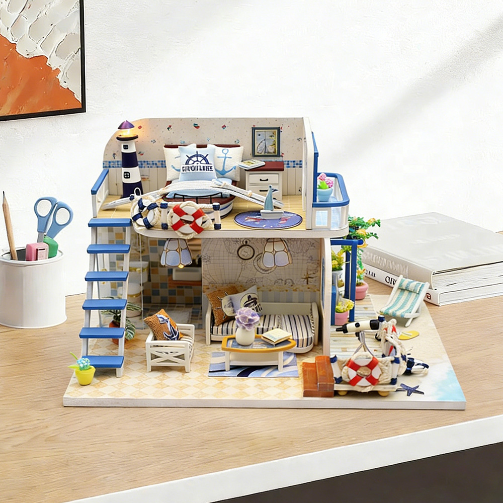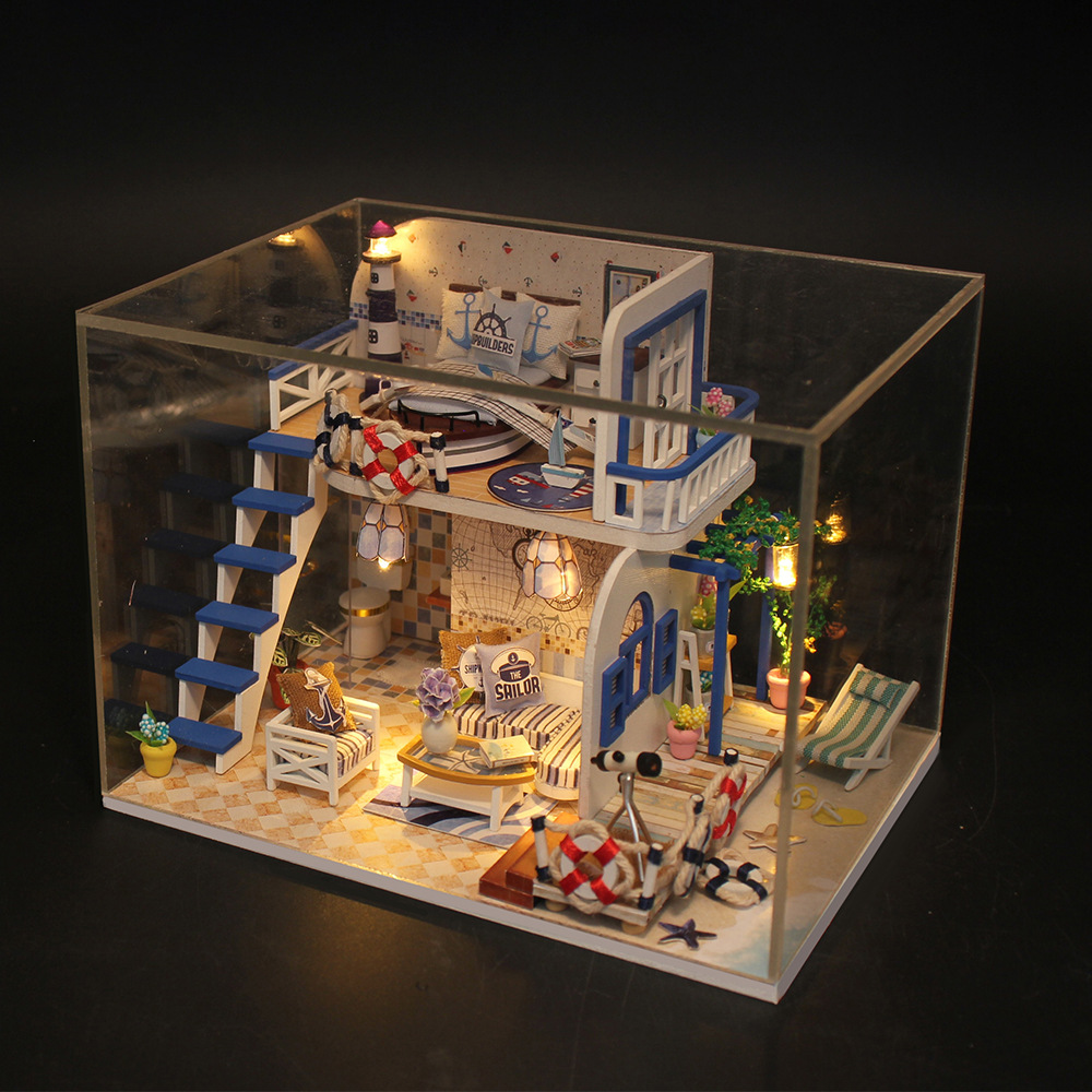 홍다 국경 간 수제 나무 DIY 소형 주택 조립식 건축 모형 집 퍼즐 입체 미니 미니어처 작은 집
