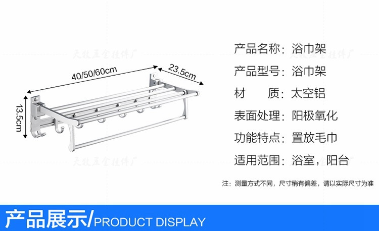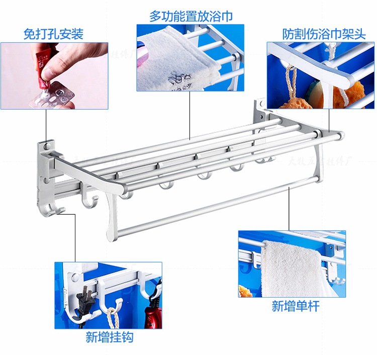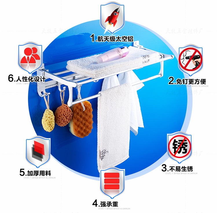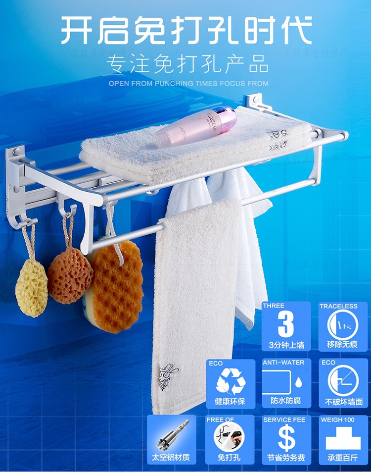 40-80cm 욕실 공간 알루미늄 욕실 타월 랙 벽걸이 욕실 이동식 접이식 타월 바 펀치 프리스토어 가기
