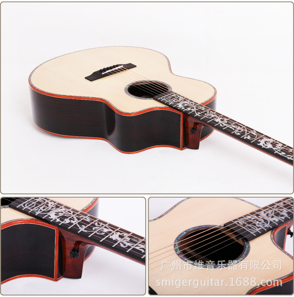 광동 목재 기타 공장 42inch 올솔리드 기타 JF 탱크형 스프루스 로즈우드 핑거스타일 싱글보드 포크 기타 제조업체