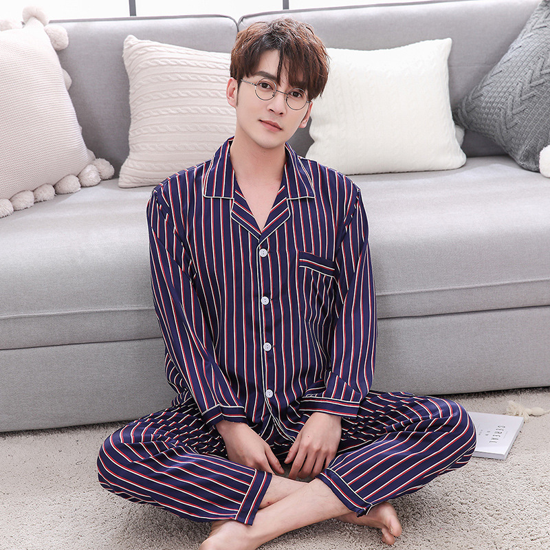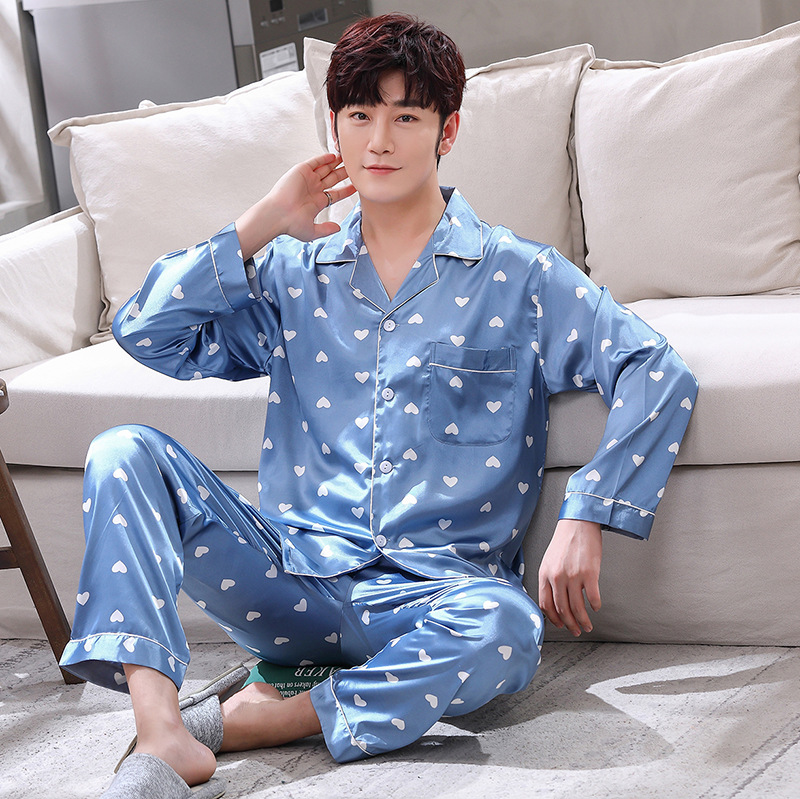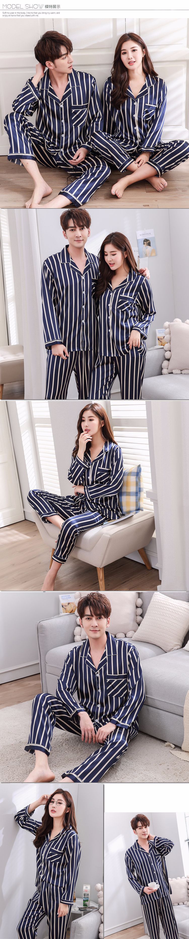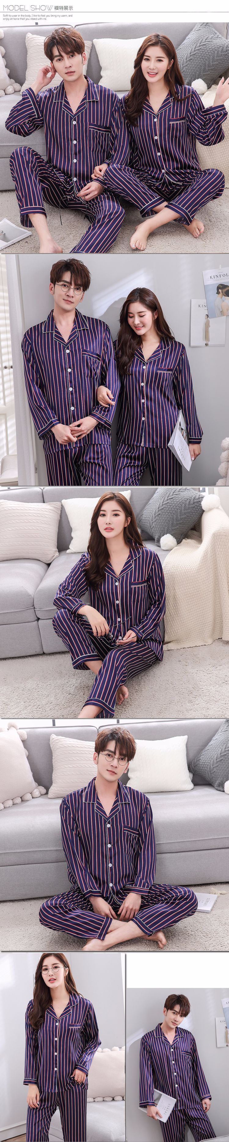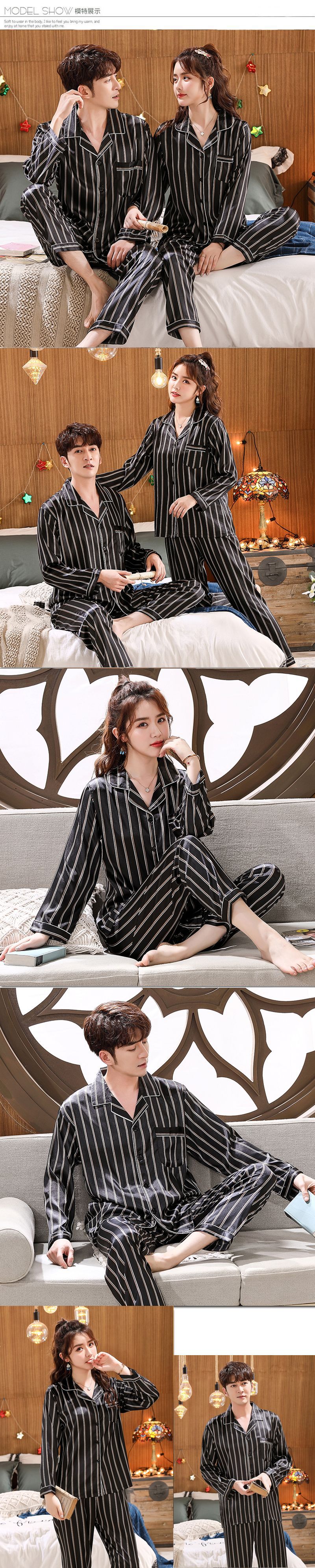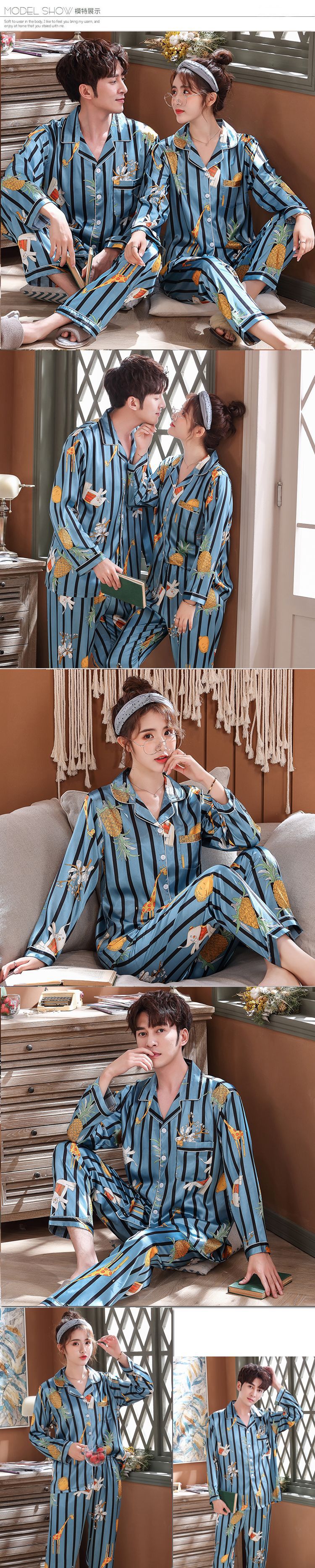 뜨거운 판매 봄과 여름 새로운 커플 잠옷 여성 긴팔 얇은 얼음 실크 정장 시뮬레이션 실크 얼음과 눈 실크 홈웨어 남성스토어 가기