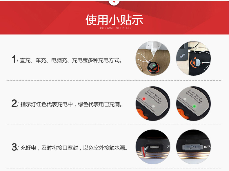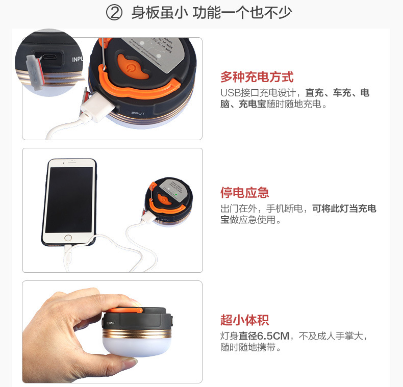 天天特价户外照明多功能野营灯USB可充电led帐篷灯露营灯内置磁铁