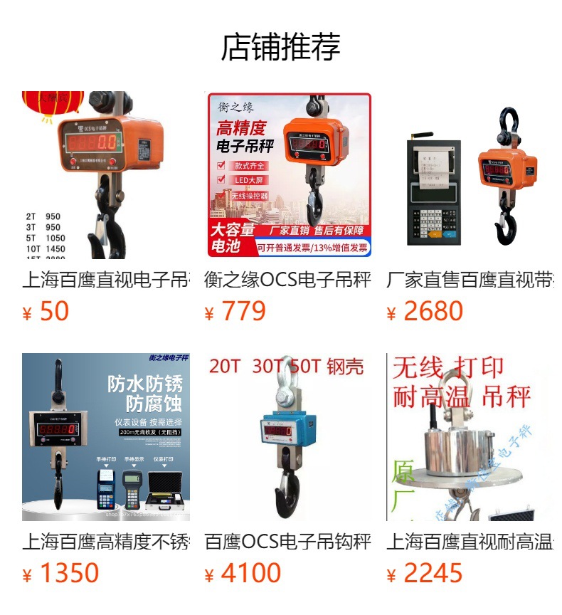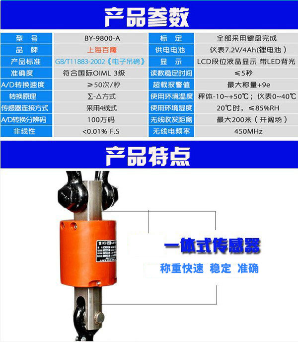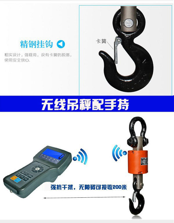 上海百鹰电子吊秤3T无线手持吊钩秤5t带打印吊称10吨行车吊磅挂秤
