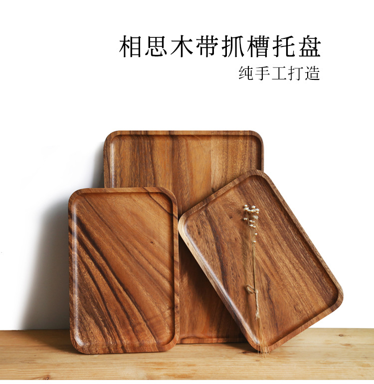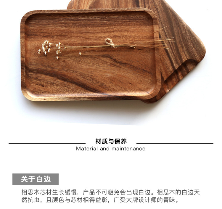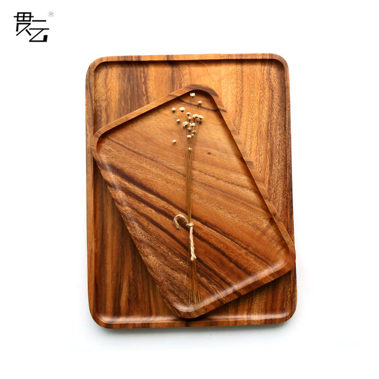 대외 무역 오리지널 주문 레스토랑 호텔 단단한 나무 트레이 브래킷 아카시아 나무 서양 음식 접시 사각형 로그 플레이트
