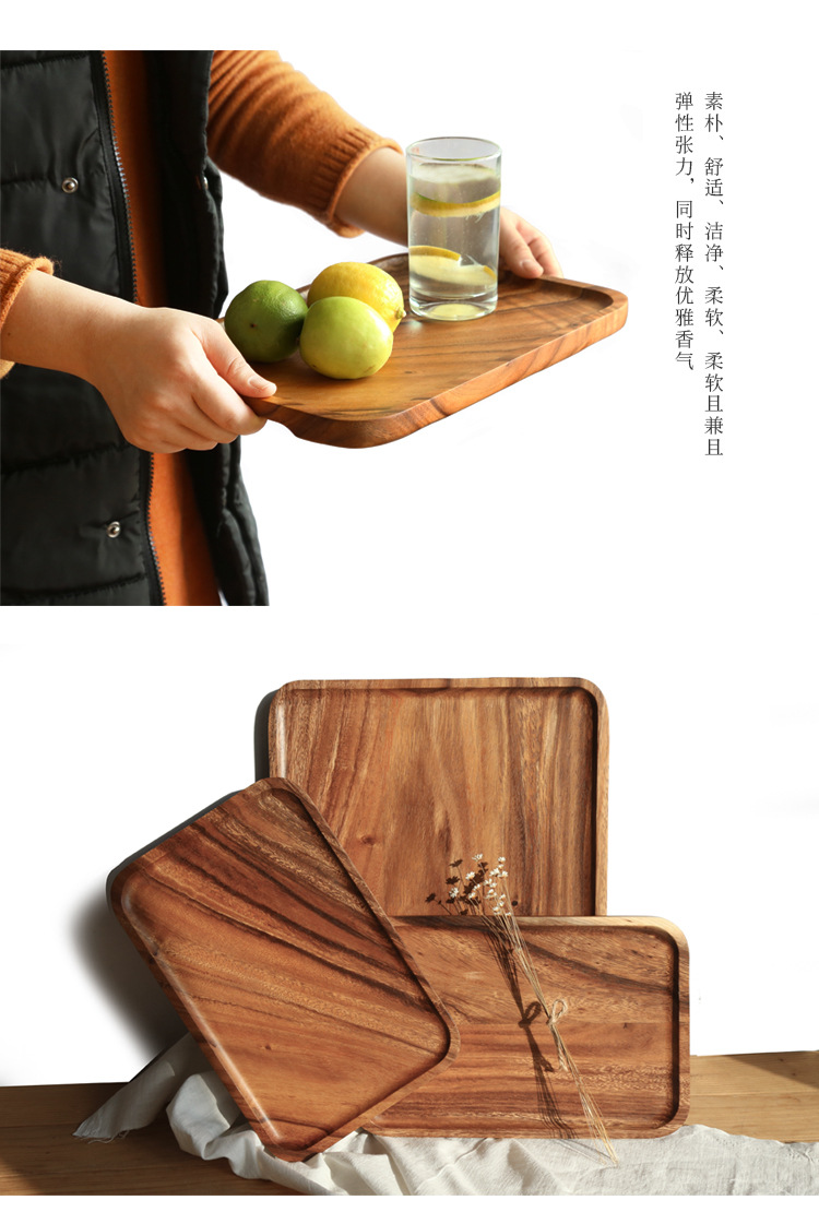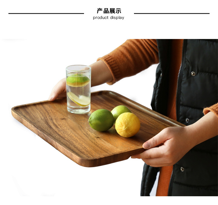대외 무역 오리지널 주문 레스토랑 호텔 단단한 나무 트레이 브래킷 아카시아 나무 서양 음식 접시 사각형 로그 플레이트스토어 가기