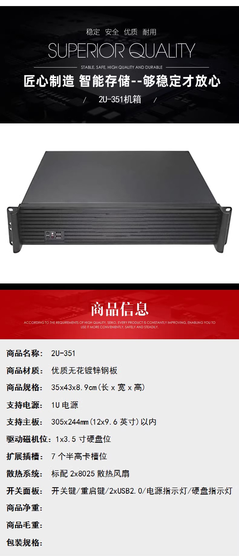 2U 알루미늄 프로파일 섀시 350MM 산업용 컴퓨터 섀시 서버 섀시 녹화 및 모니터링 저장용 1U 전원 공급 장치 ATX 보드
