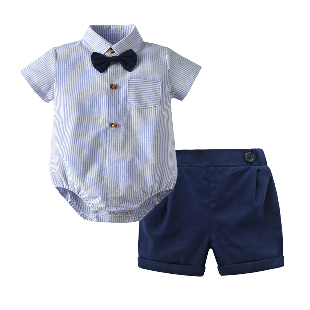 童套装ins男童短袖爬服哈衣短裤套装跨境两件套baby clothes