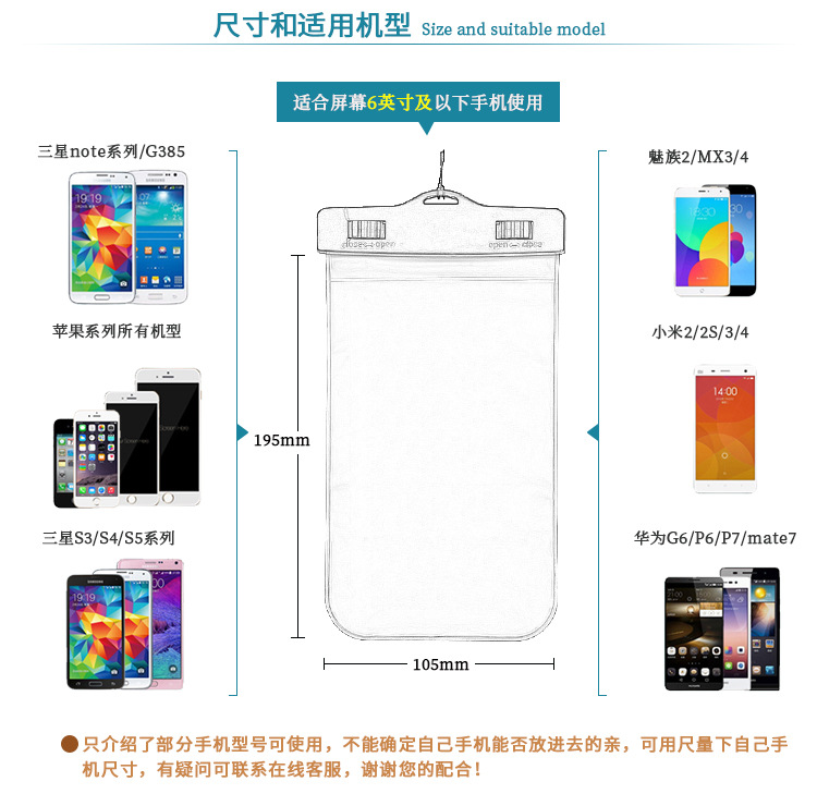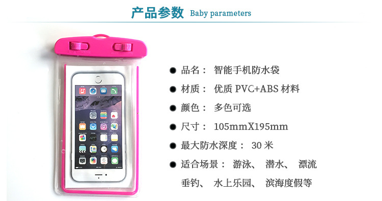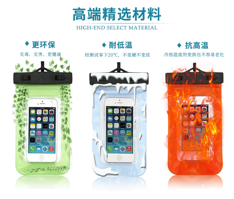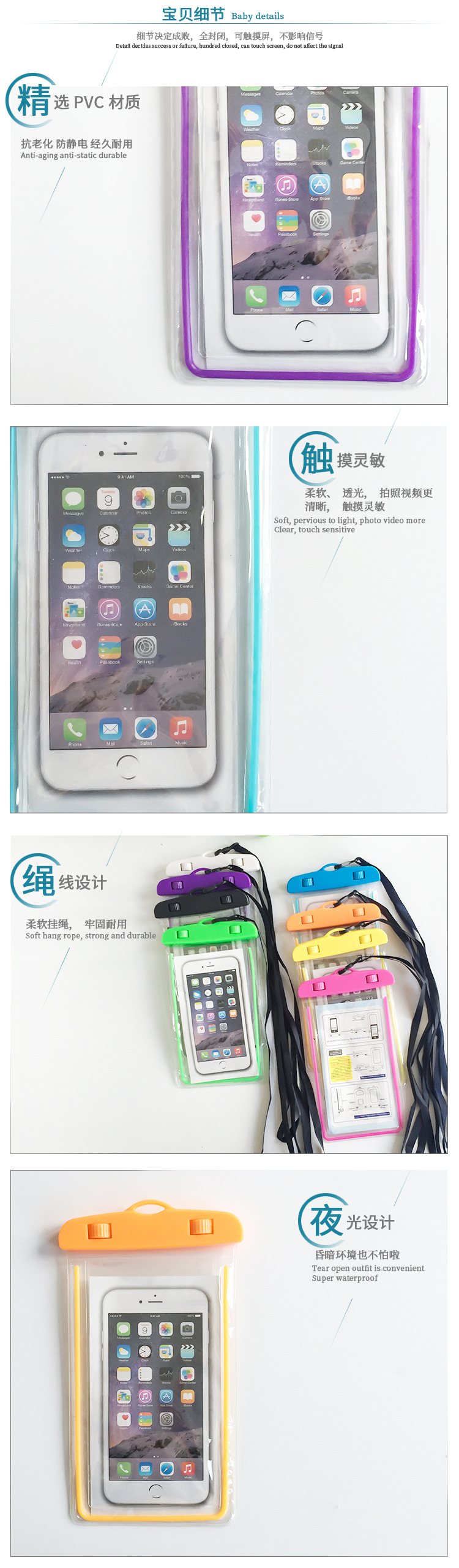 재고 발광 휴대 전화 방수 가방 밀폐 투명 PVC 휴대 전화 방수 가방 야외 수영 다이빙 휴대 전화 케이스