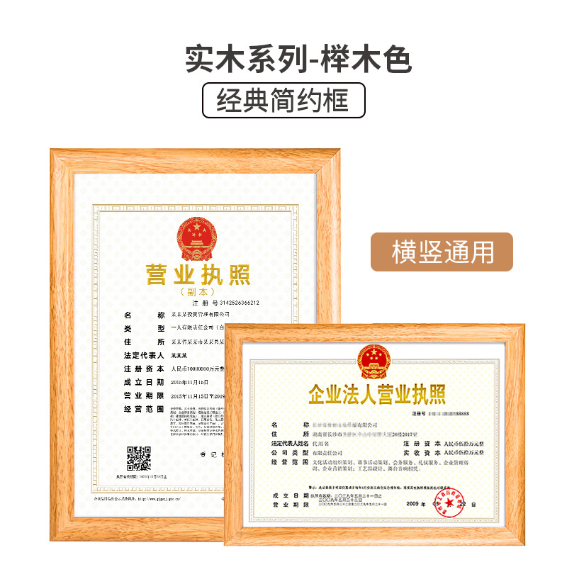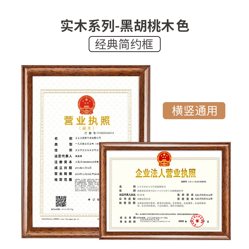 Jinlongxing 사업 라이센스 프레임 A3A4 사진 프레임 벽걸이형 단단한 나무 프레임 공장 직접 판매 목재 문서 프레임 도매스토어 가기