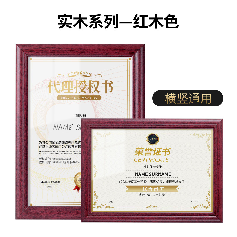 Jinlongxing 사업 라이센스 프레임 A3A4 사진 프레임 벽걸이형 단단한 나무 프레임 공장 직접 판매 목재 문서 프레임 도매