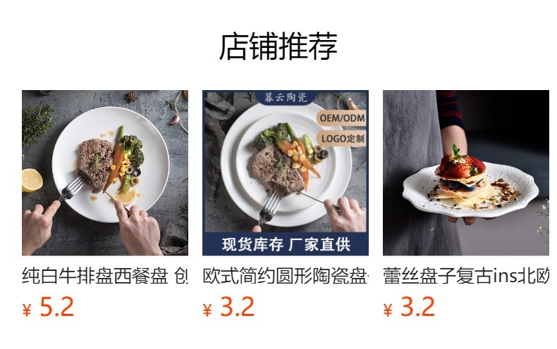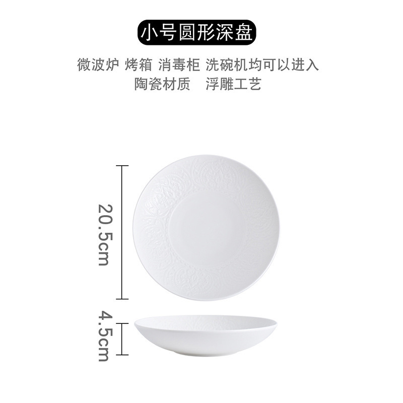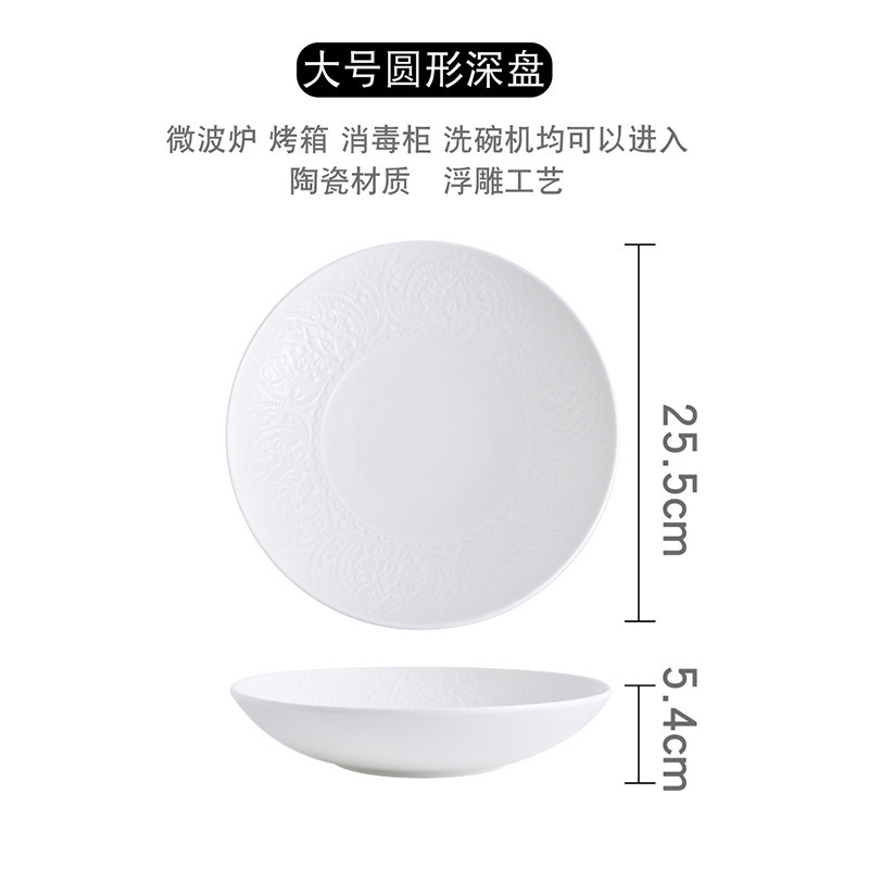 창의적인 유럽 스타일 흰색 접시 세라믹 접시 평평한 원형 스테이크 접시 서양식 레스토랑 식기 케이크 피자 접시스토어 가기