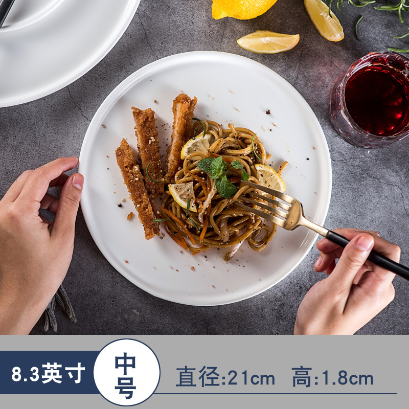 창의적인 유럽 스타일 흰색 접시 세라믹 접시 평평한 원형 스테이크 접시 서양식 레스토랑 식기 케이크 피자 접시