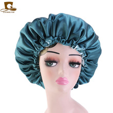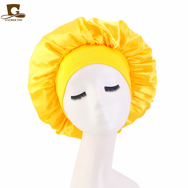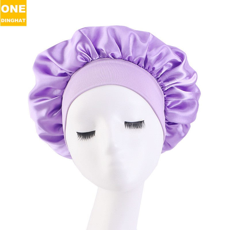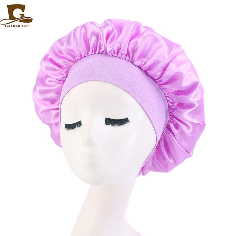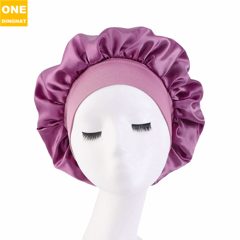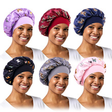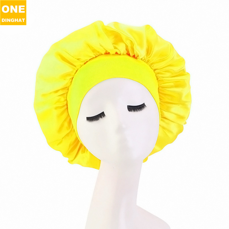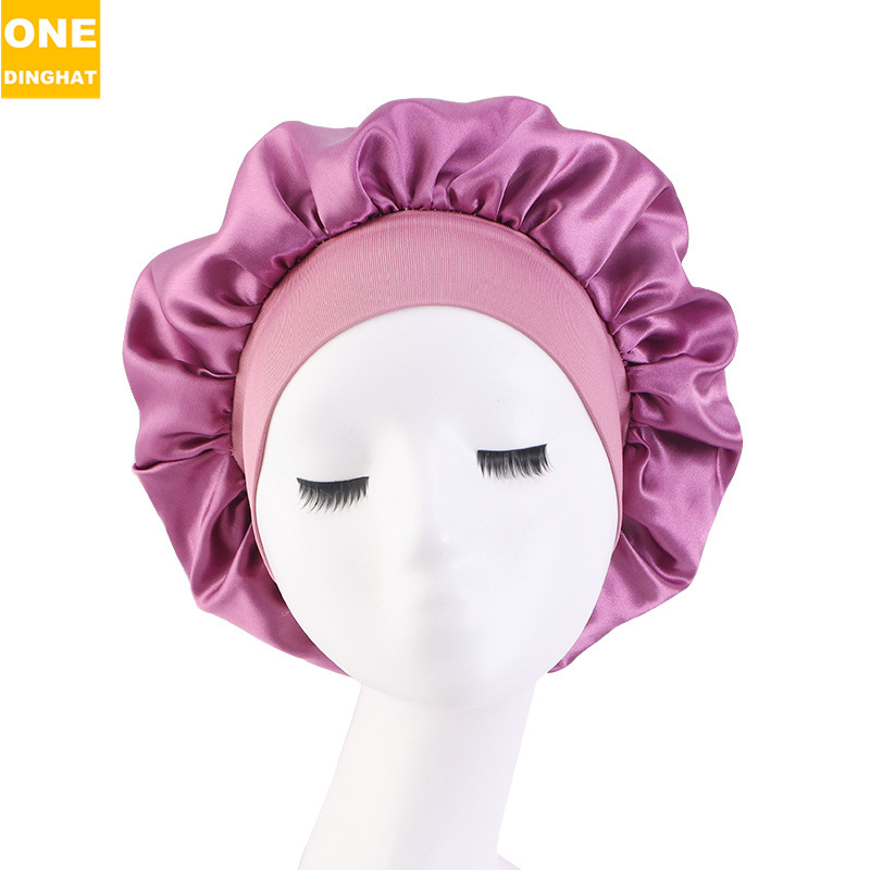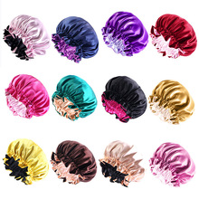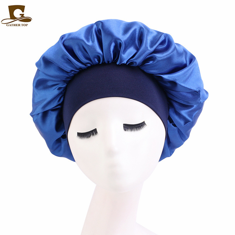 亚马逊热销帽子加大号弹力宽边双层色丁圆帽 护发睡帽 美容束发帽