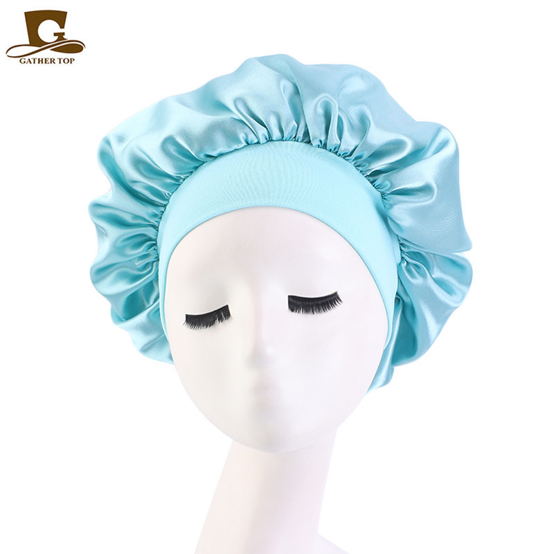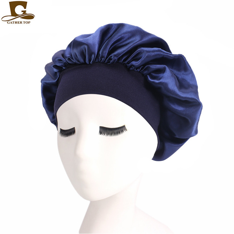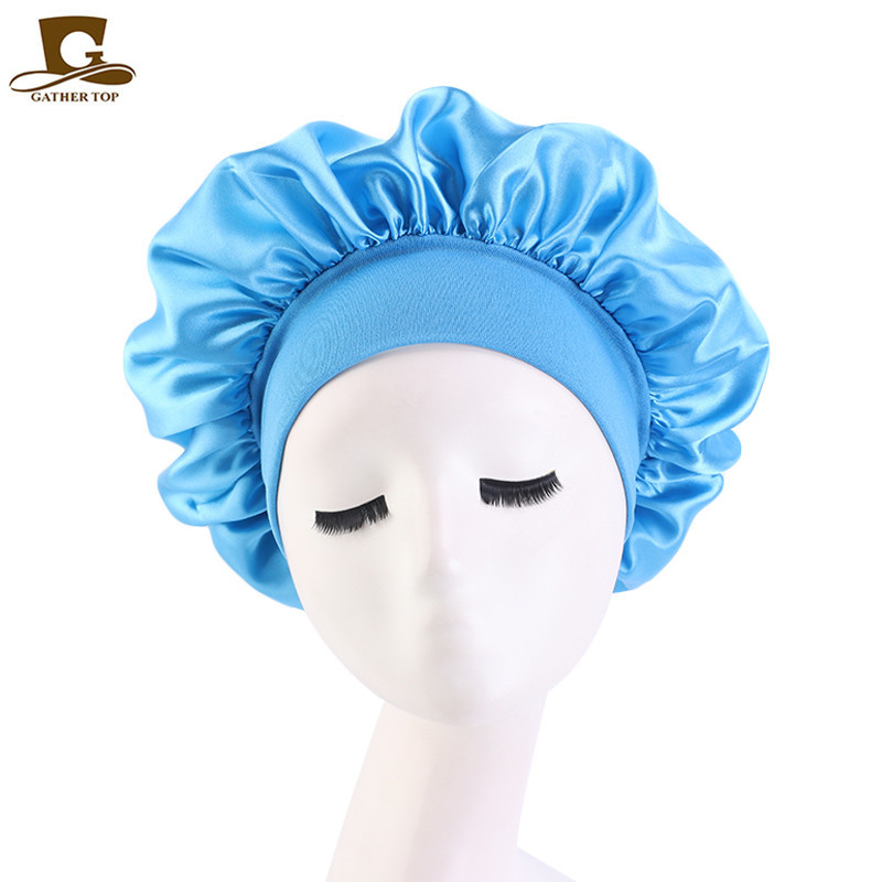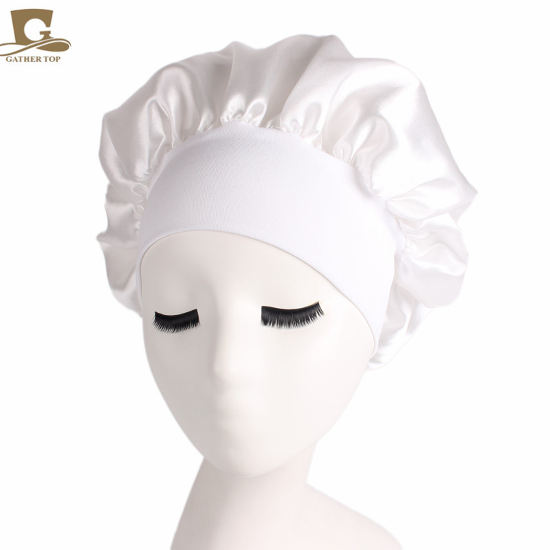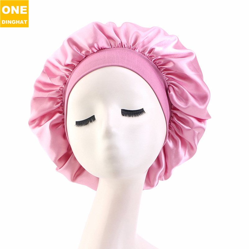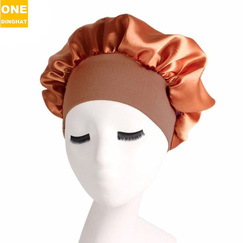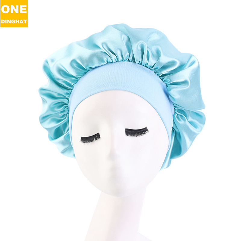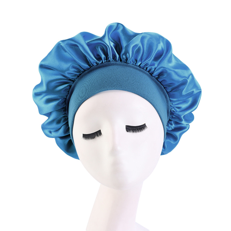 亚马逊热卖货源仿真丝长筒弹力发带帽 色丁睡帽 长发护发帽子