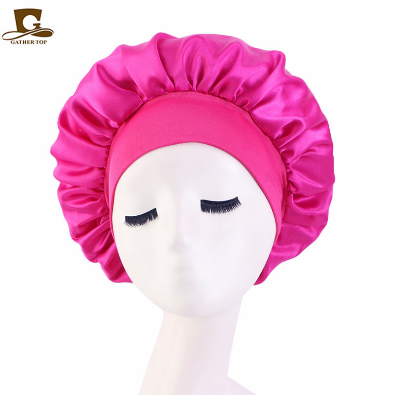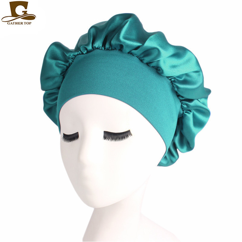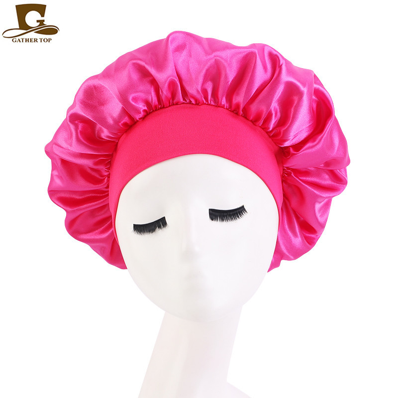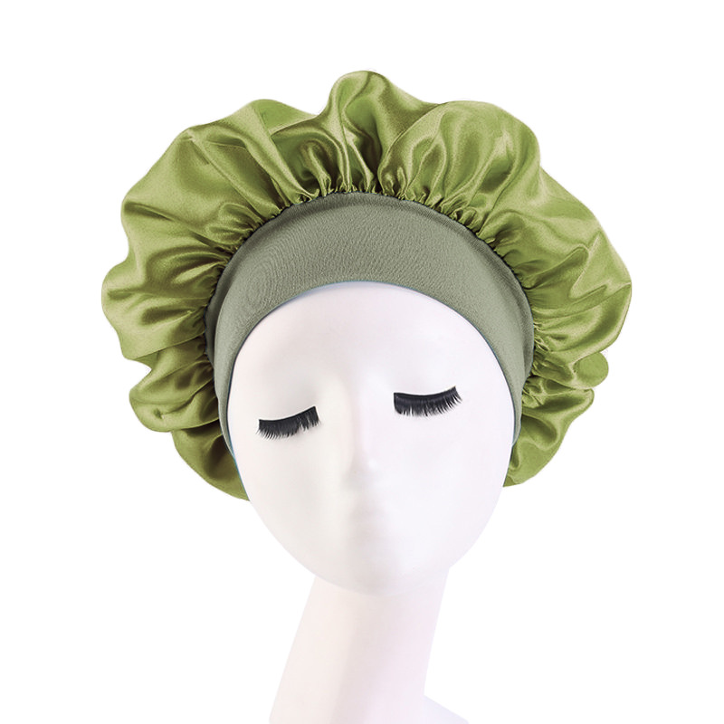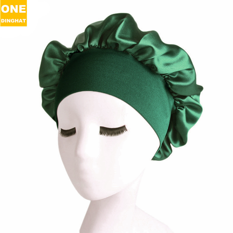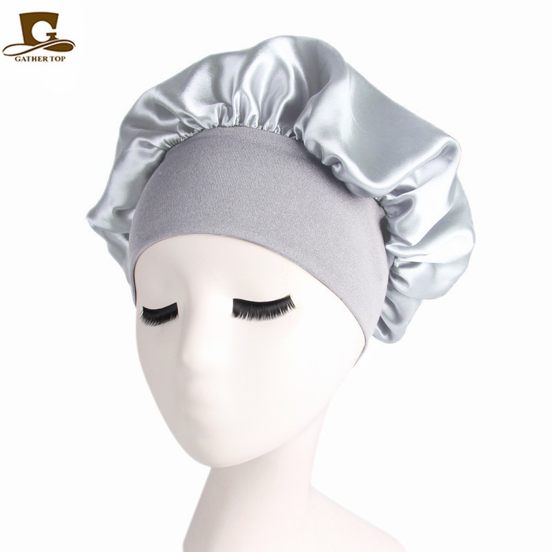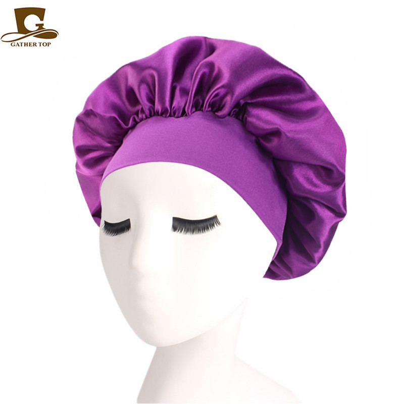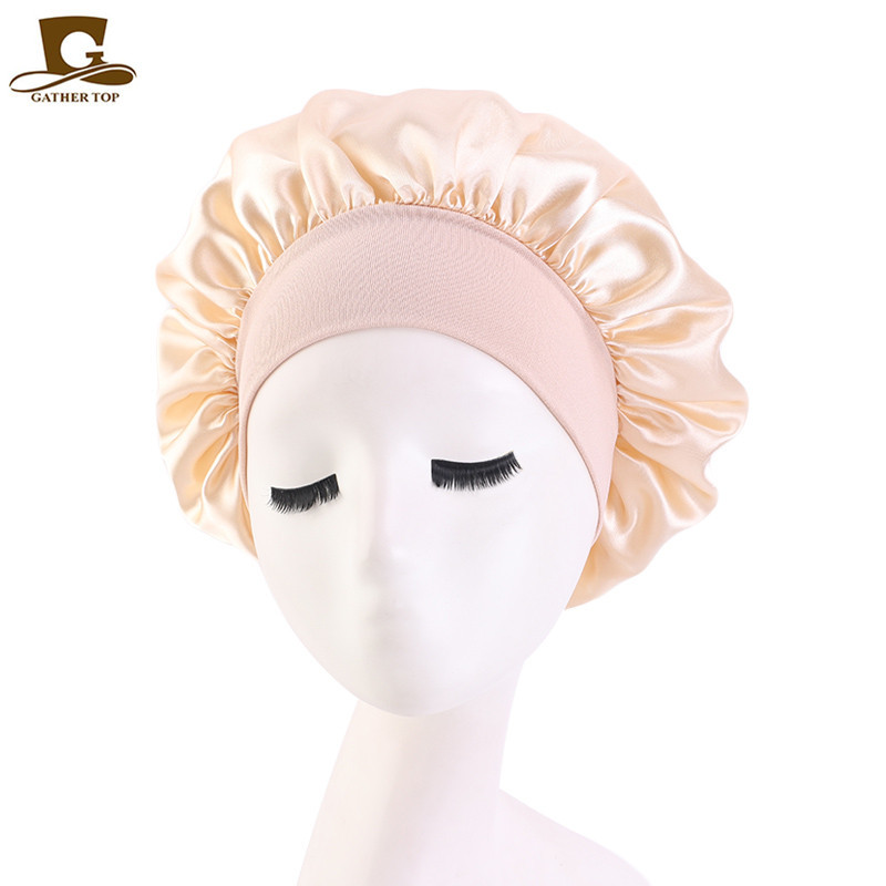 亚马逊热卖货源仿真丝长筒弹力发带帽 色丁睡帽 长发护发帽子