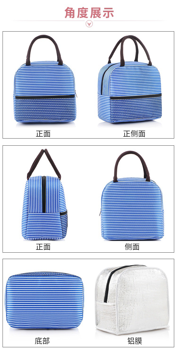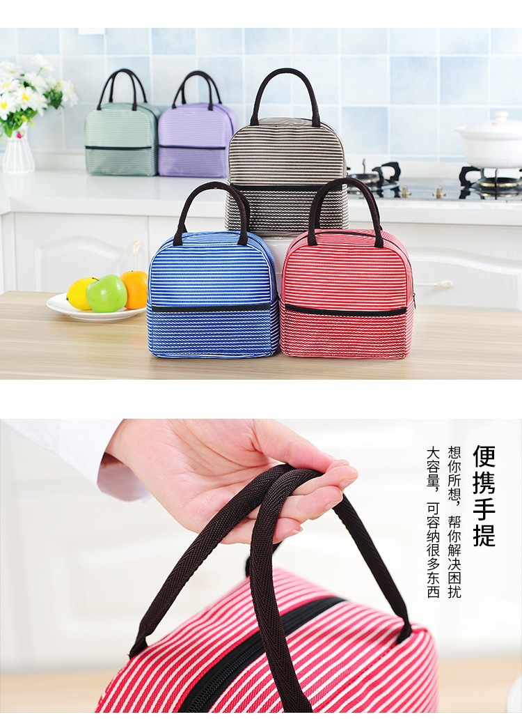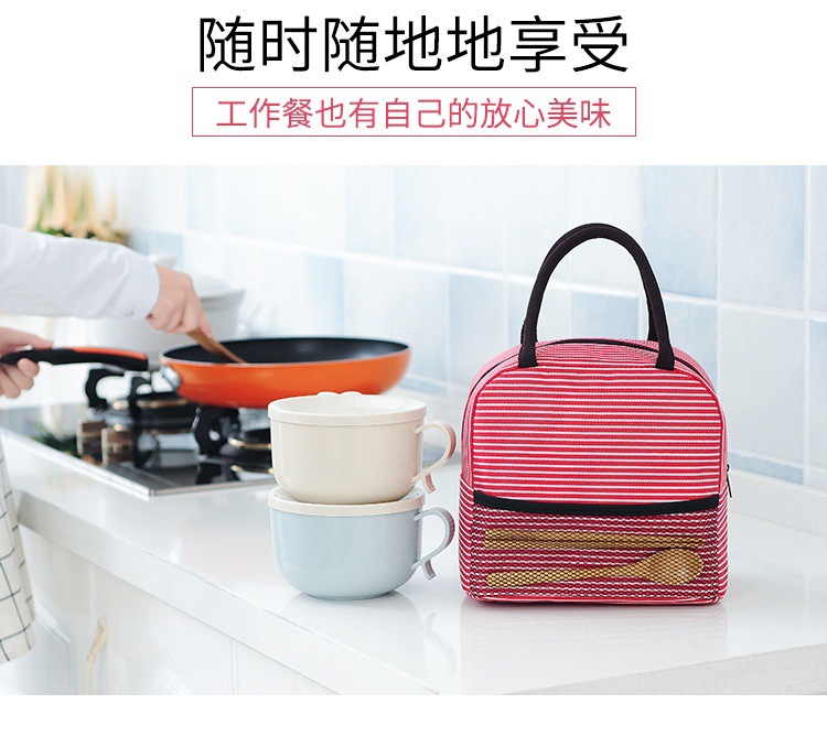 도시락 가방, 점심 도시락 가방, 학생들이 식사를 가져갈 수 있는 손에 들고 다닐 수 있는 캔버스 가방, 줄무늬 보온 아이스팩, 아이스팩 보관함스토어 가기