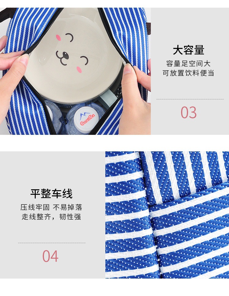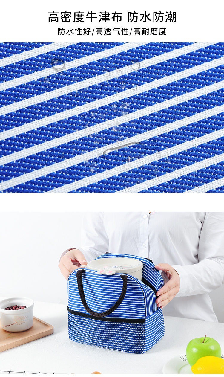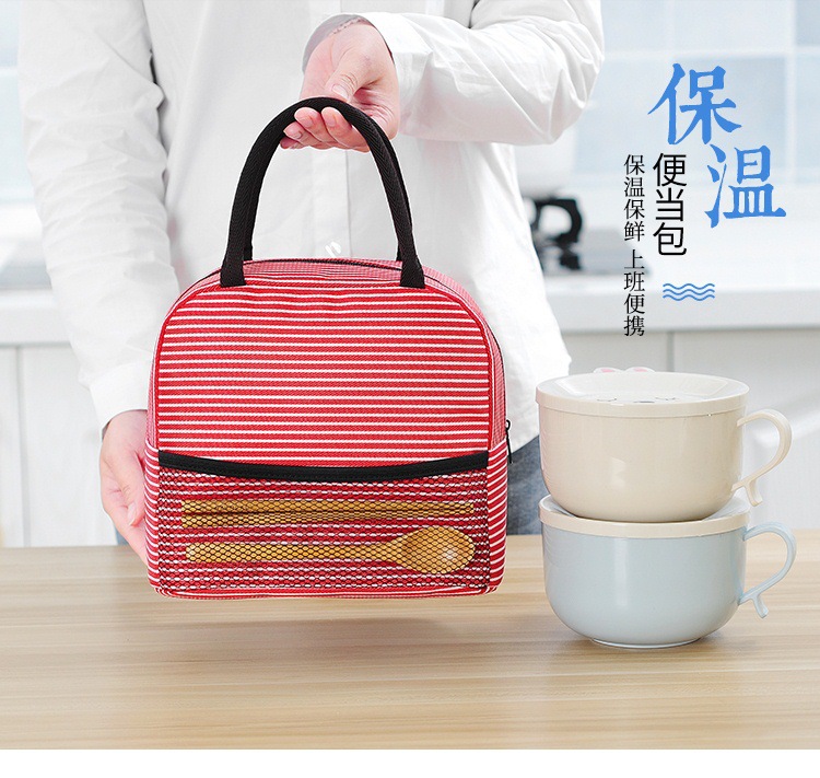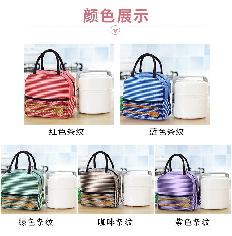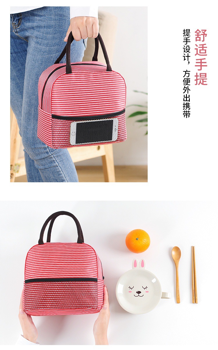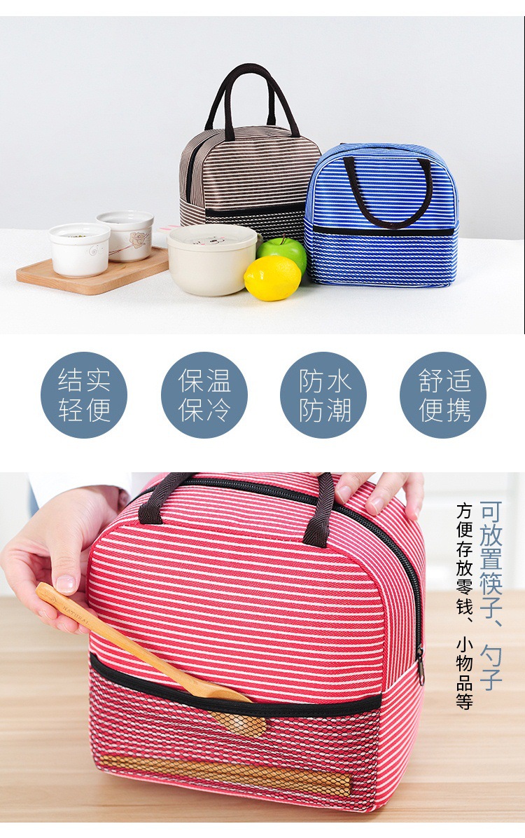 도시락 가방, 점심 도시락 가방, 학생들이 식사를 가져갈 수 있는 손에 들고 다닐 수 있는 캔버스 가방, 줄무늬 보온 아이스팩, 아이스팩 보관함