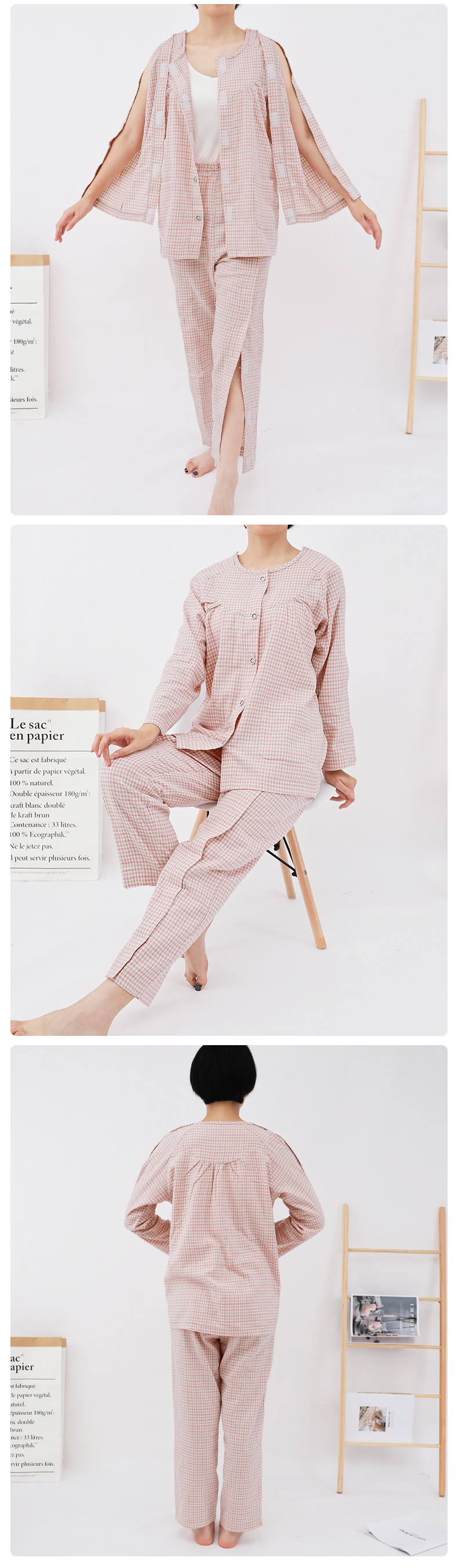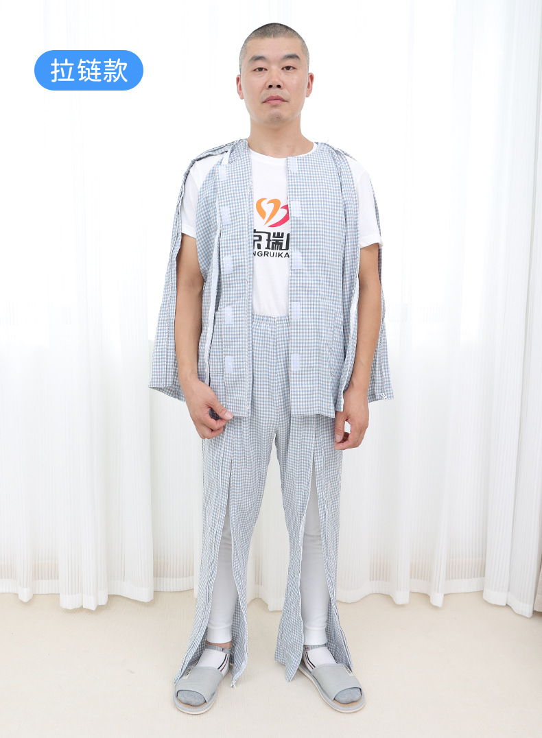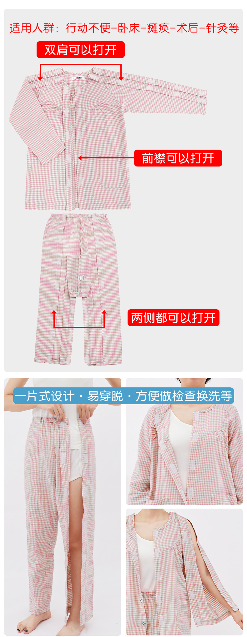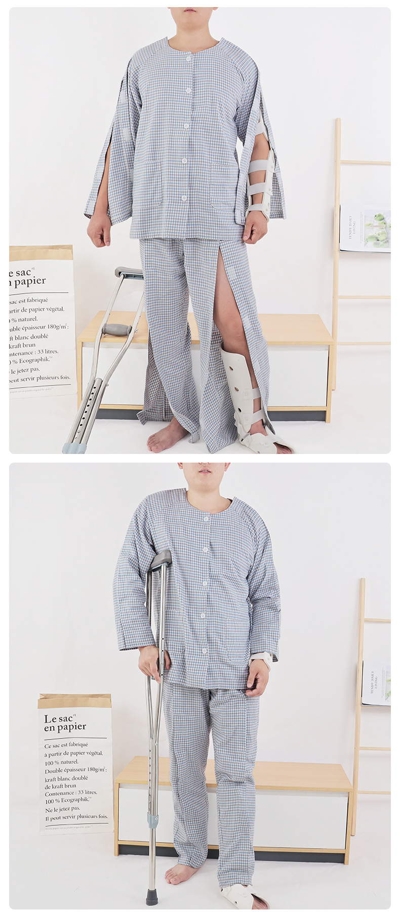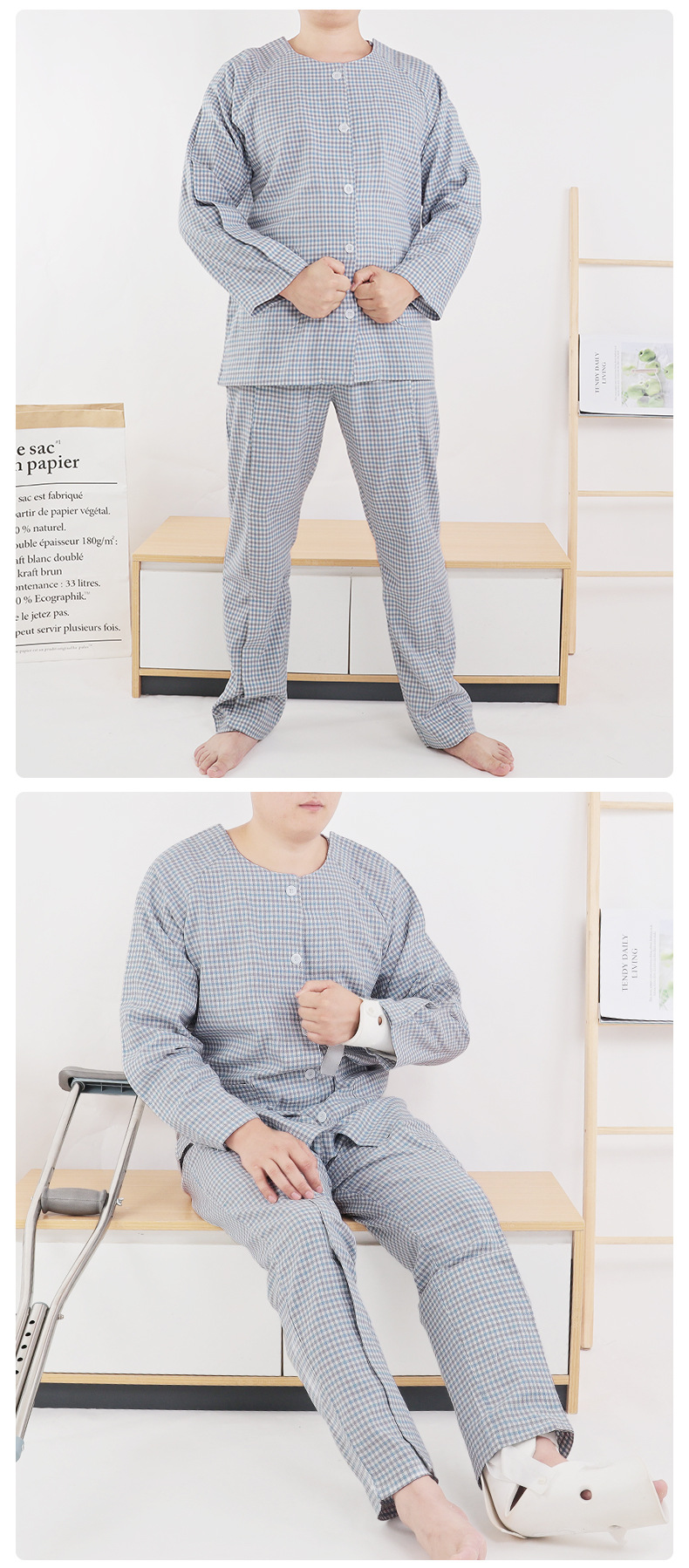 봄과 가을 수술 후 팔과 다리 골절 환자를 위해 수유복을 착용하고 벗기 쉬운 침대 노인 잠옷 침술 물리 치료 의류
