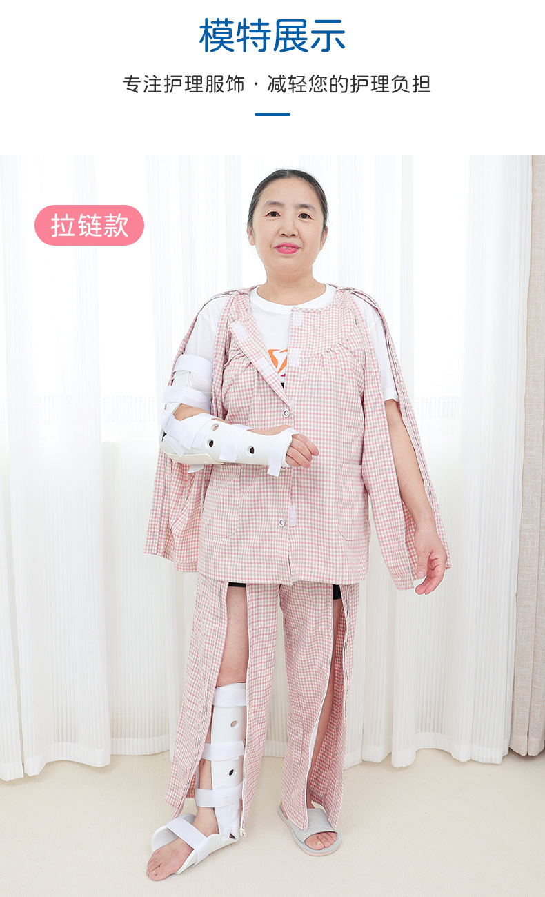 봄과 가을 수술 후 팔과 다리 골절 환자를 위해 수유복을 착용하고 벗기 쉬운 침대 노인 잠옷 침술 물리 치료 의류스토어 가기