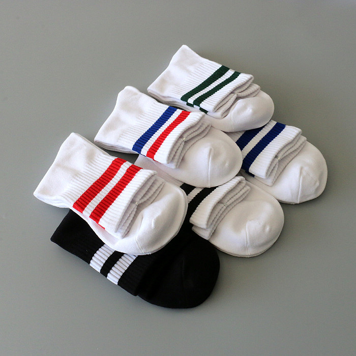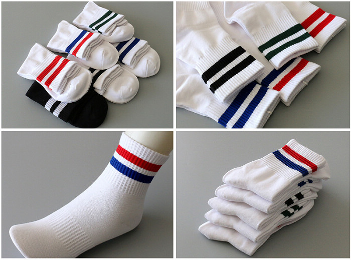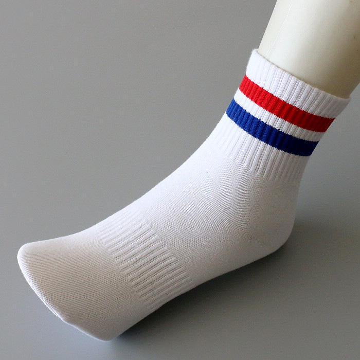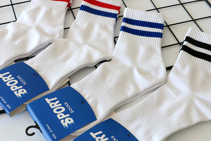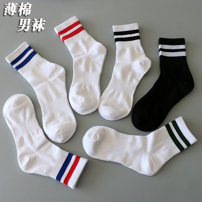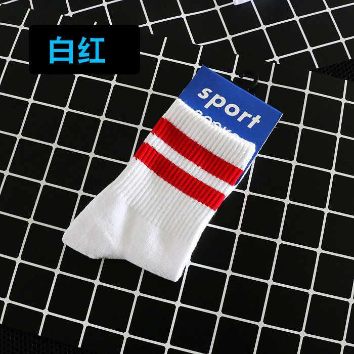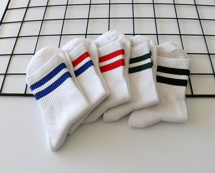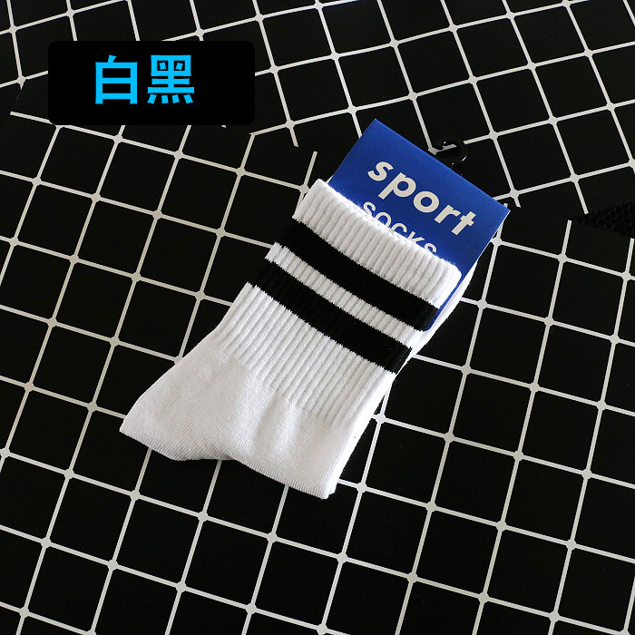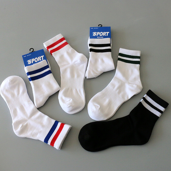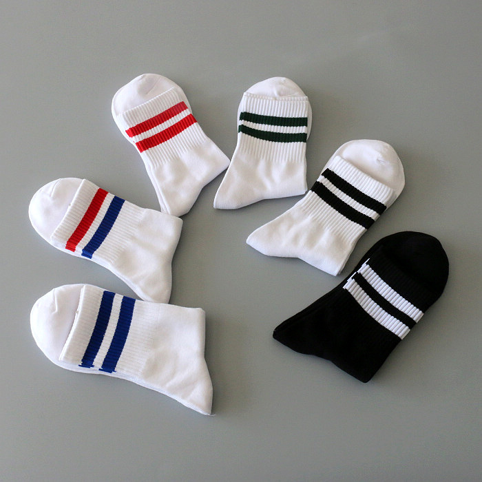 봄 여름 가을 두 바 스트라이프 스포츠 양말 중간 길이 양말 남자 양말 아카데믹 스타일 캐주얼 양말 성격 트렌디 얇은 스타일