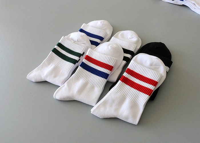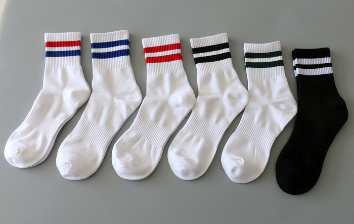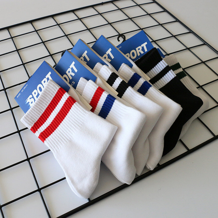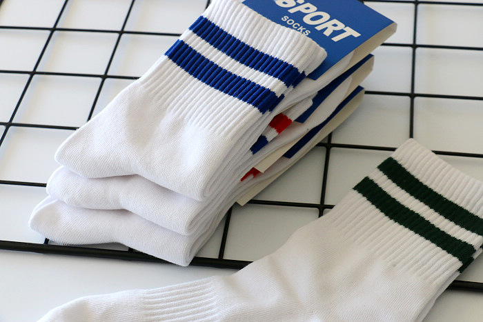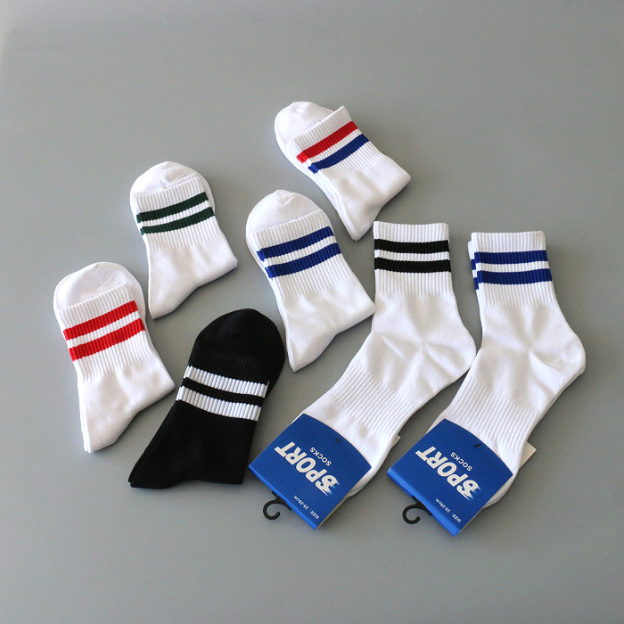 봄 여름 가을 두 바 스트라이프 스포츠 양말 중간 길이 양말 남자 양말 아카데믹 스타일 캐주얼 양말 성격 트렌디 얇은 스타일스토어 가기