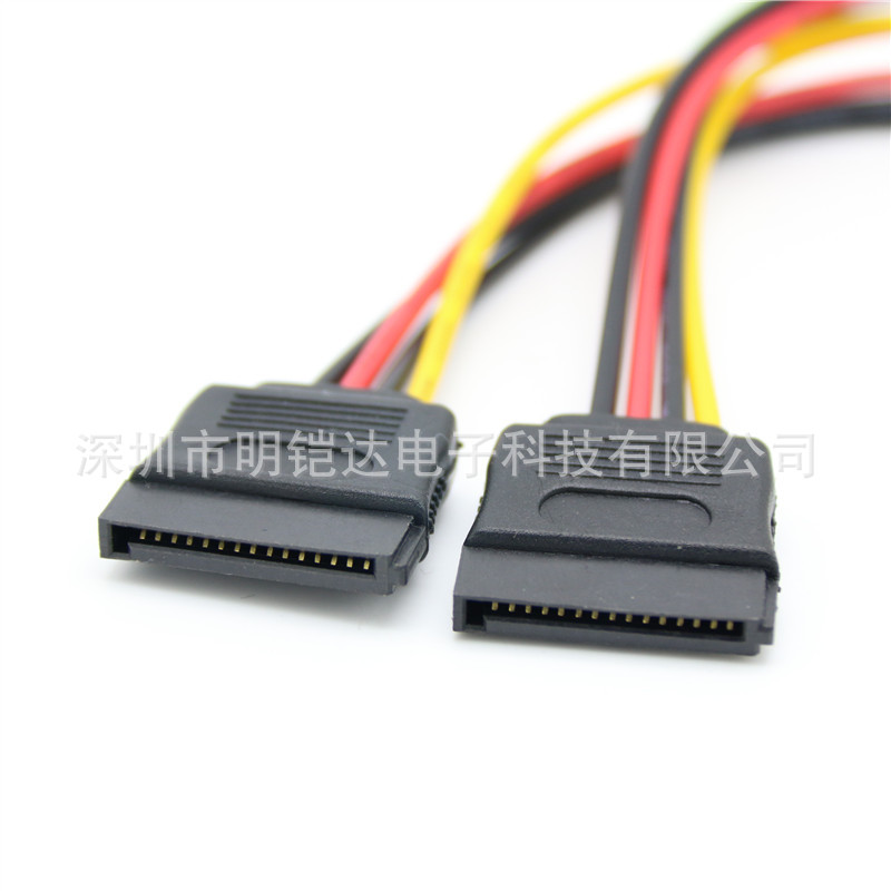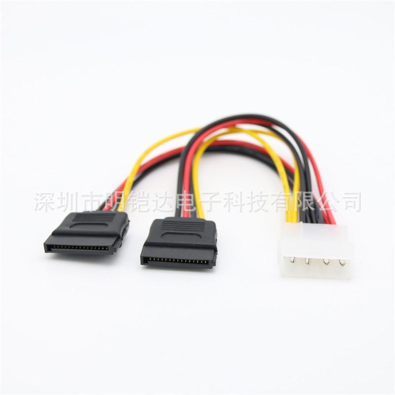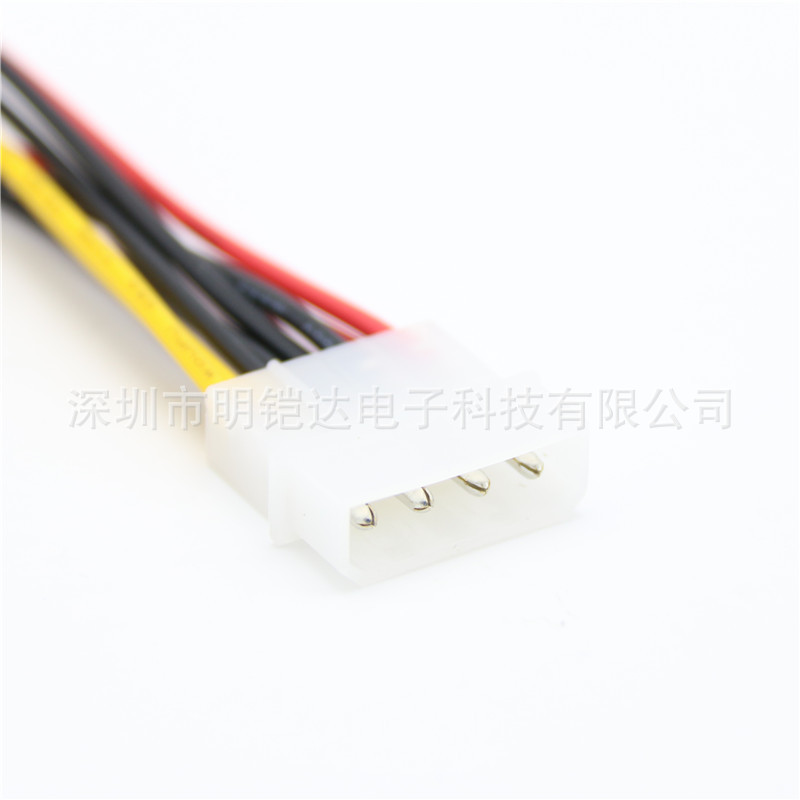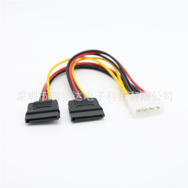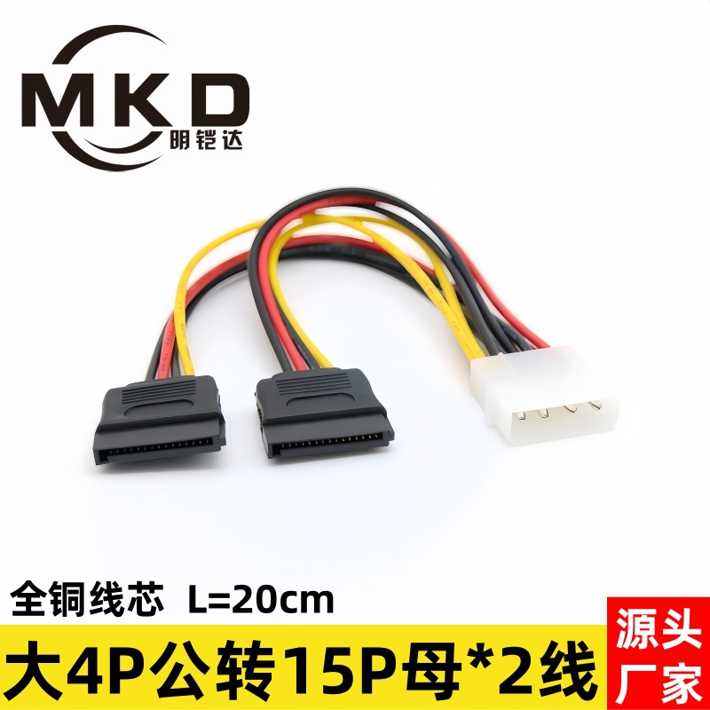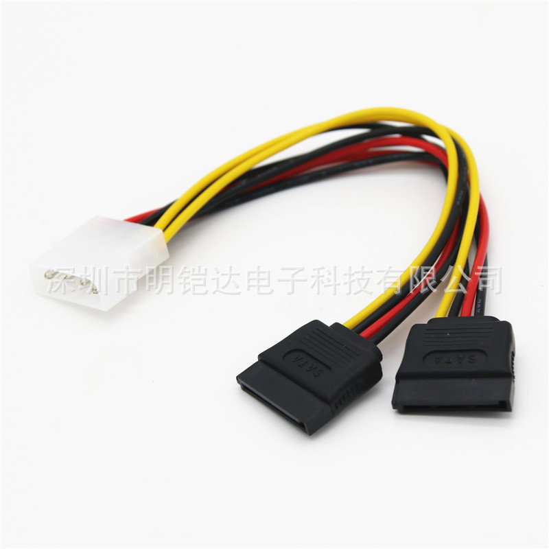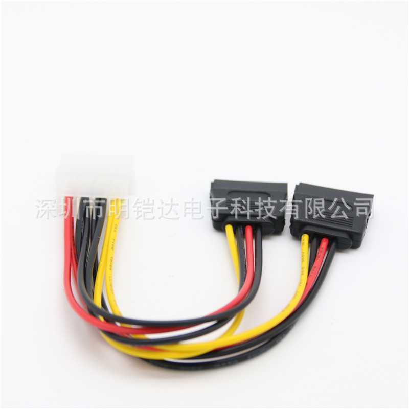 产品用途:大D型4PIN电源线 转换成 SATA电源接口,一个4P转出2个SATA电源接口