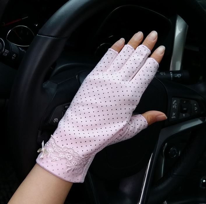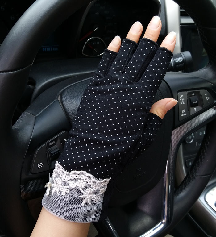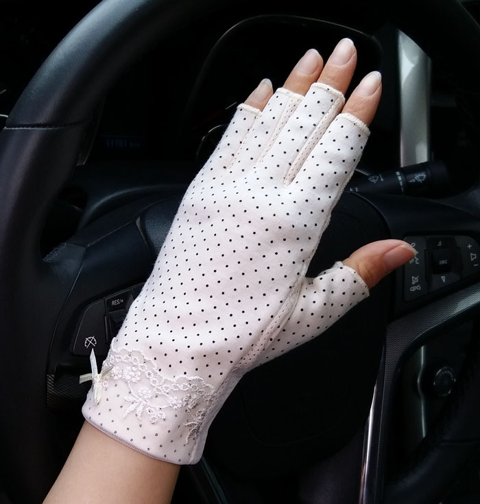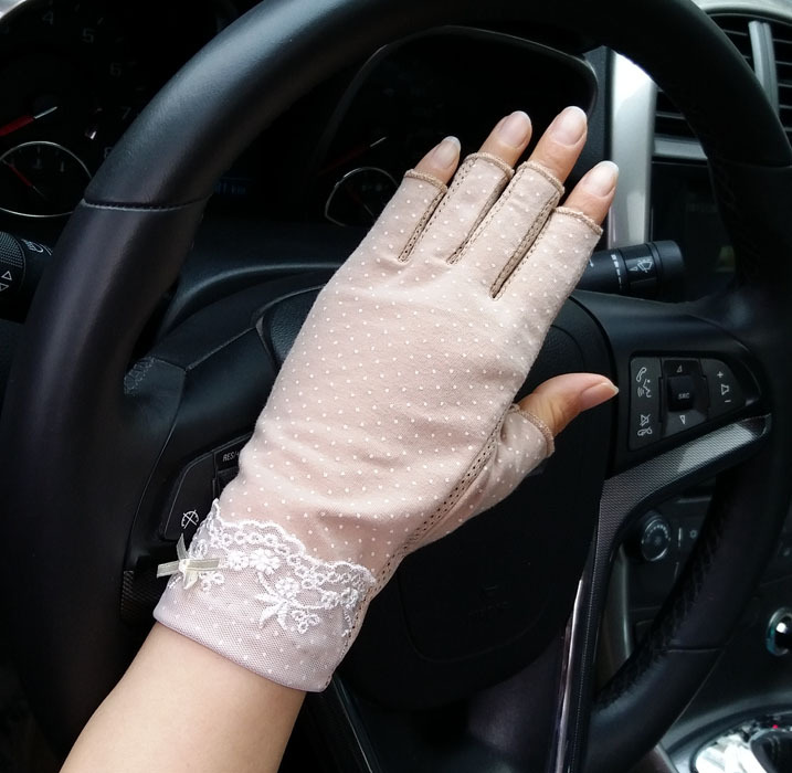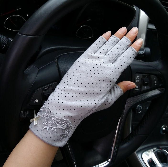 여름 반 손가락 장갑 여성의 얇은 운전 면 미끄럼 방지 태양 보호 장갑 우아한 레이스 짧은 장갑