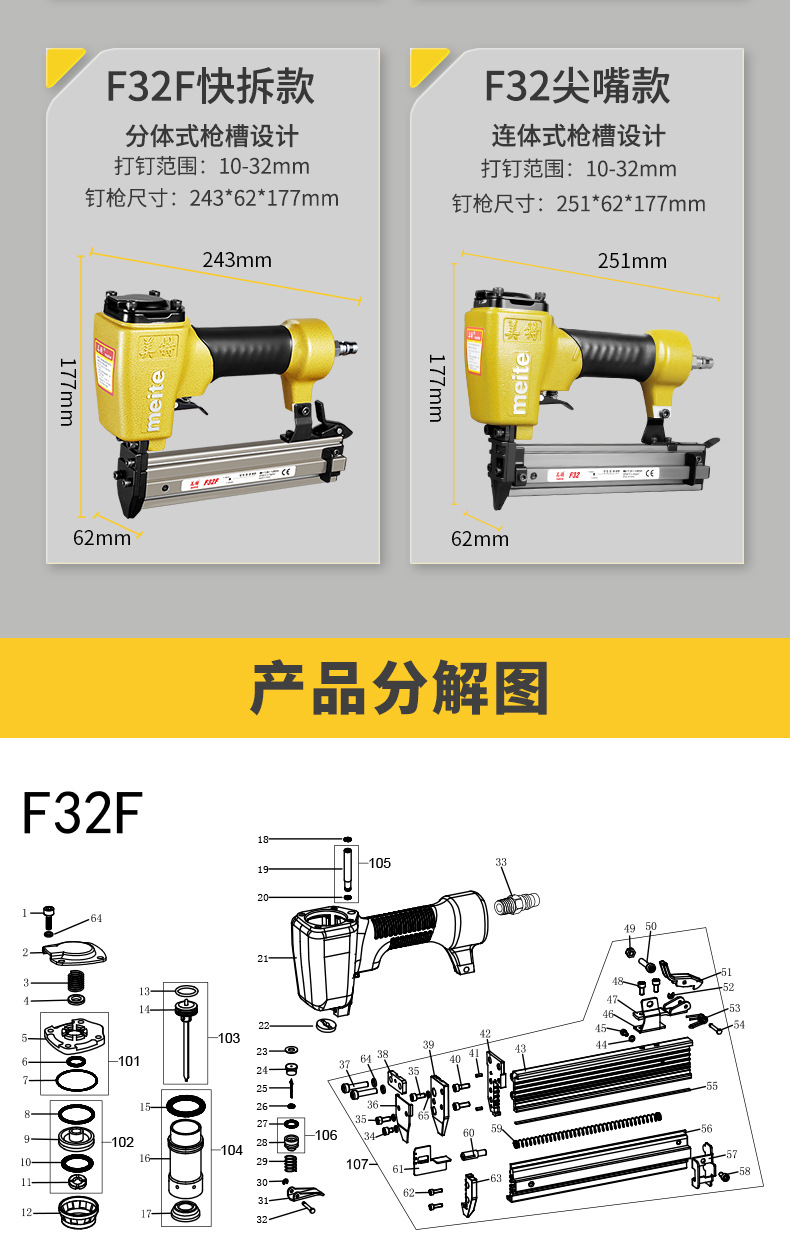 • F32F 스트레이트 네일 건 (배달 발사 핀)