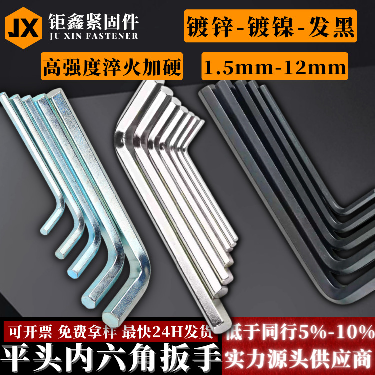 니켈 도금 \ 아연 도금 \ 흑화 알렌 렌치 플랫 헤드 L 자형 내부 육각 렌치 블랙 \ 블루 및 화이트 육각 키스토어 가기