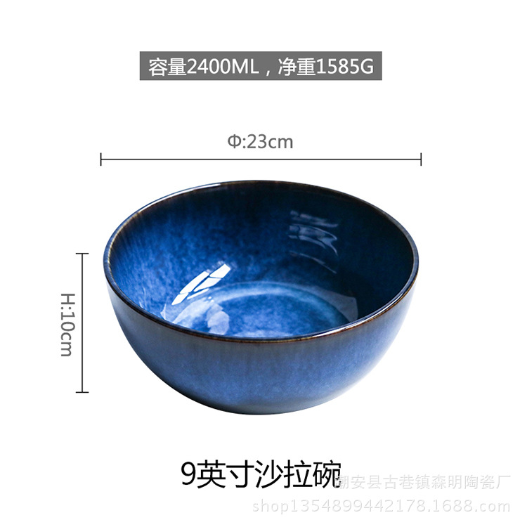 일본 스타일 빈티지 가마 변화 세라믹 가정 과일 살라 그릇 9 인치 대형 수프 그릇 대형 국수 그릇 레스토랑 그릇