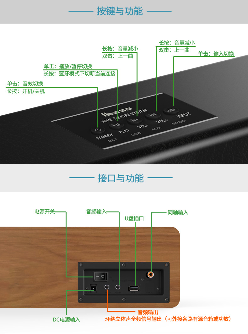 • 소형 영화관 세트, 블랙 우드 색상