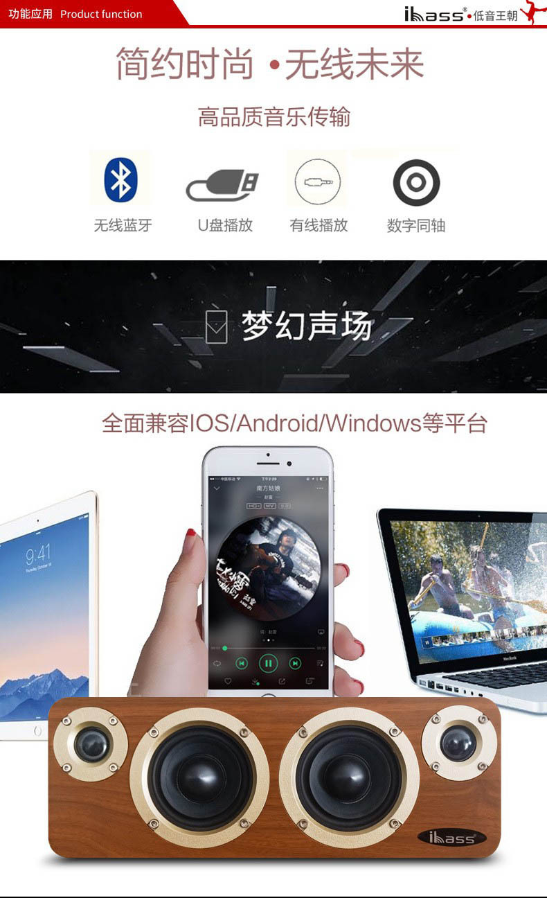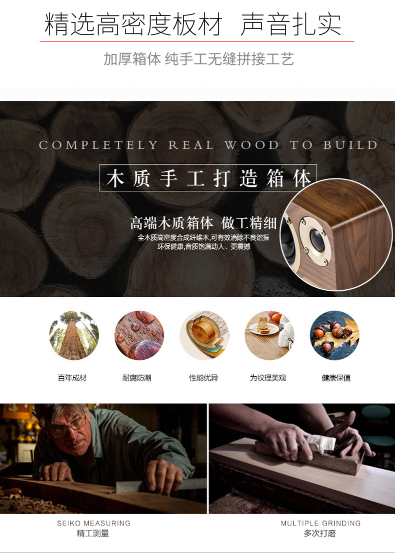 创意款木质桌面蓝牙音箱大功率低音炮小型有源插卡家庭影院组合